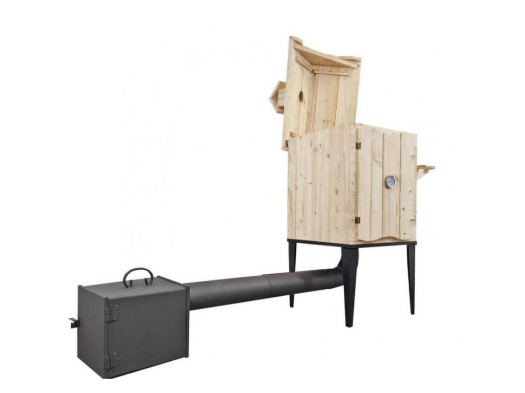 - Az ajtó dupla zárral rendelkezik, amely szorosan illeszkedik, és a kamrán kívülre szerelhető, így szorosabb, kevesebb füst szökik ki, nem ragad meg magasabb páratartalomban, és nem hoz létre réseket, ha a fa nagyon száraz. A tűzhely biztosítja a füst szabad áramlását a füstölés során, aminek köszönhetően a húsok füstölödnek és nem párolódnak meg.