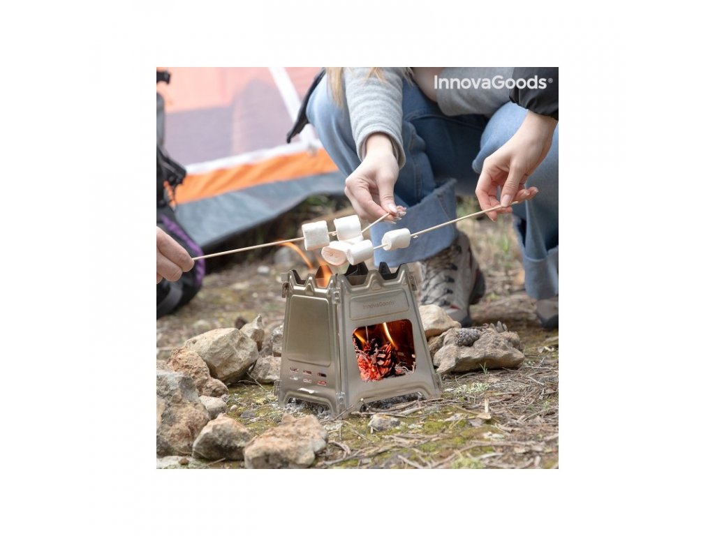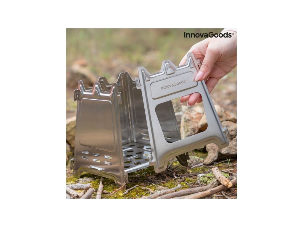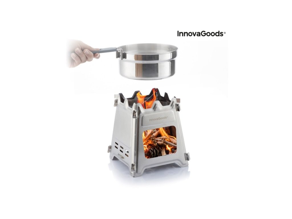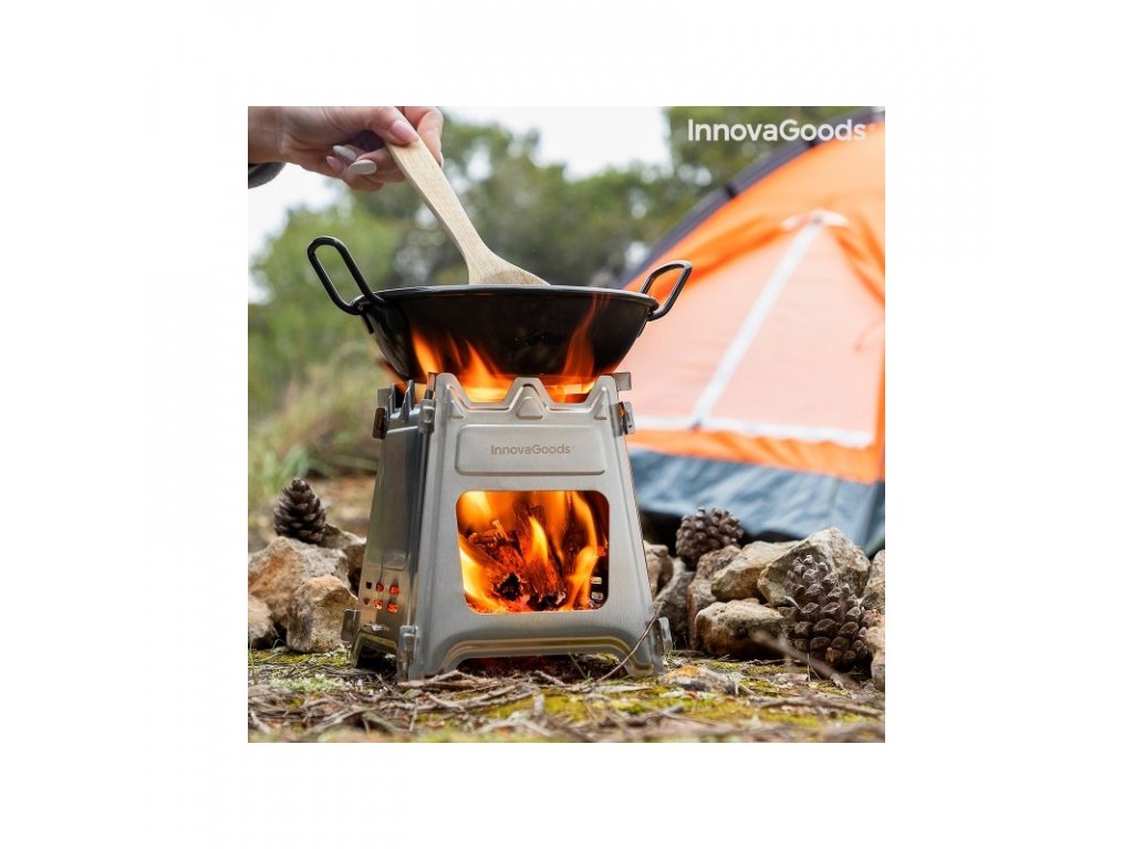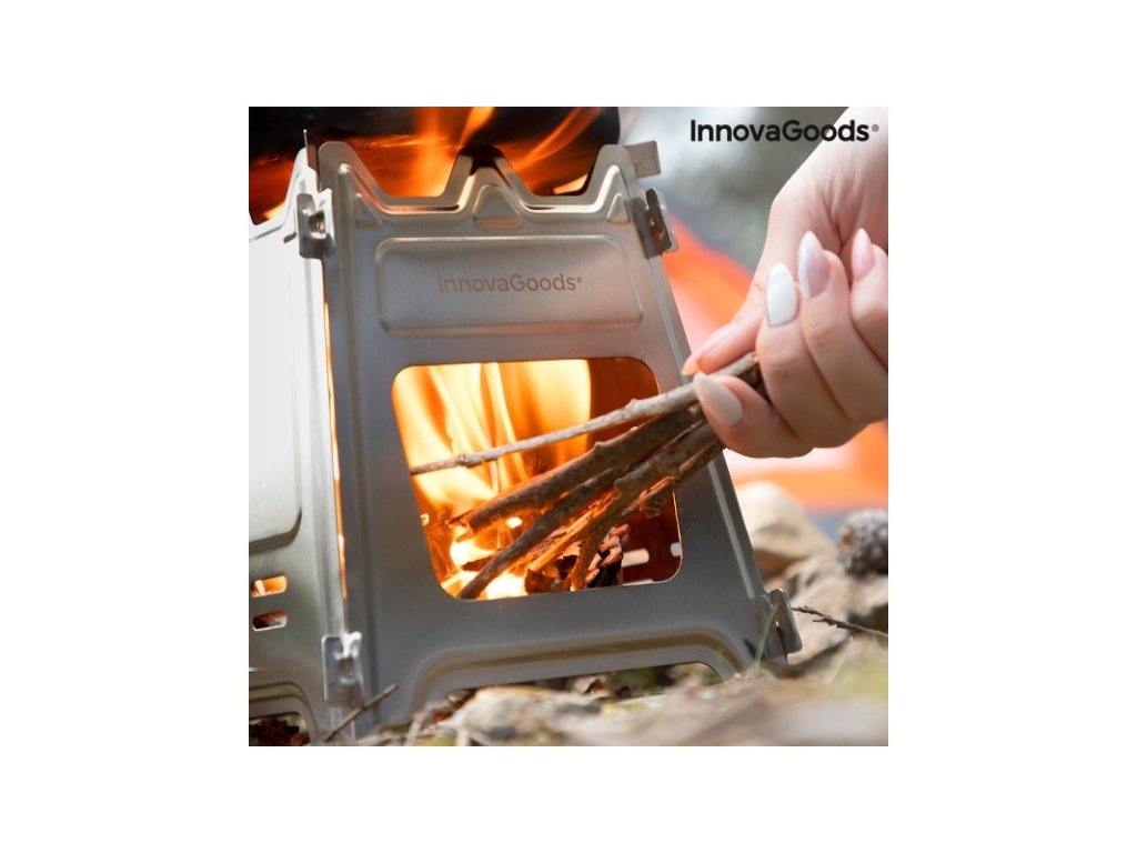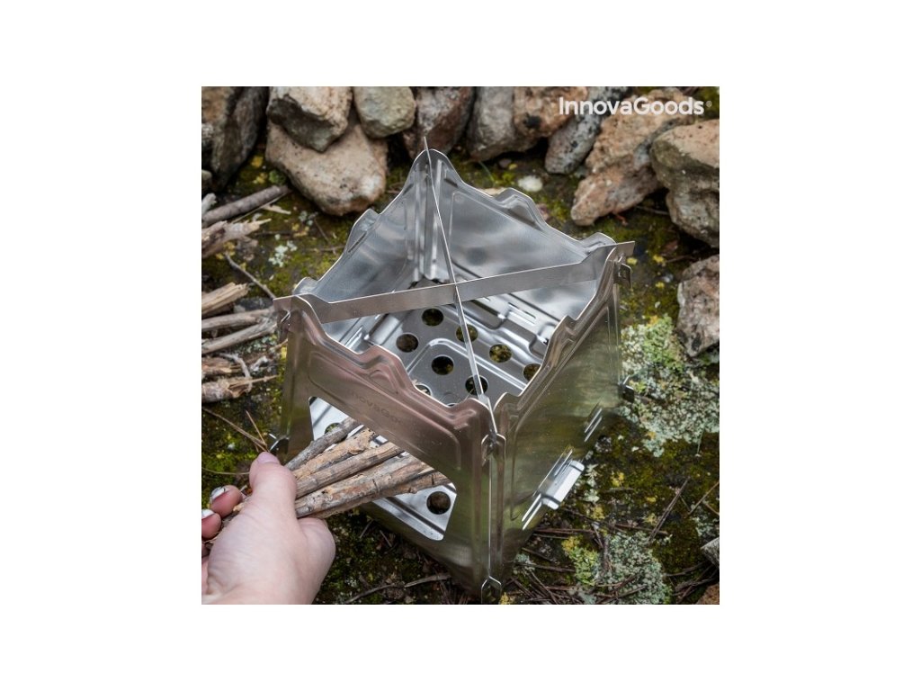 Az InnovaGoods Flamet kempingtűzhely ideális a főzéshez bármikor és bárhol (piknik, kempingezés, túrázás stb.), nehéz és terjedelmes ételek nélkül. Lehetőség van a felhasználás helyén bőségesen rendelkezésre álló fa vagy ágmaradványok elégetésére. A kályha könnyen hordozható hátizsákban, táskában stb. Alkalmas fára, nem igényel gázt vagy szenet. Egyszerű és gyors össze- és szétszerelés néhány másodperc alatt. Kialakításának és méretének köszönhetően bármilyen serpenyő elfér rajta. Könnyen szállítható, tartalmaz egy szállítótáskát, amely kiváló minőségű poliészter 420D anyagból készült. Könnyen hozzáférhető elülső nyílás és szellőzőnyílások a hatékony égés érdekében. Ez a kempingtűzhely több fém alkatrészből áll, amelyek a mellékelt használati útmutató szerint könnyen összeszerelhetők. Helyezze az összeszerelt tűzhelyet sima és stabil felületre. Helyezzen be kis ágakat vagy fadarabokat az elülső lyukon keresztül, hogy könnyebben meggyulladjon a tűz. A tűzhely bármilyen lánggal érintkező edényhez használható.