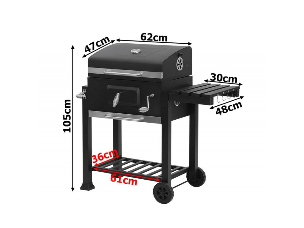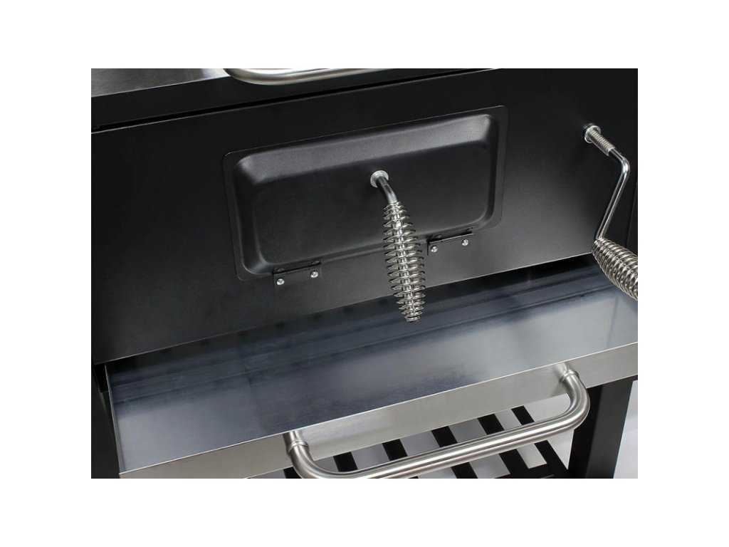 Hőmérővel ellátott zárt grillünk nem csak egy grillező eszköz – ez egy igazi gép, amellyel felejthetetlen ízeket és pillanatokat hozhat létre szeretteivel. Merüljön el az aromás ételek, a tökéletes hőmérséklet-szabályozás és a precíz főzés világában – mindezt megbízható grillünknek köszönhetően, amely forradalmasítja szabadtéri kulináris összejöveteleit! A zárt grill kiváló hőmérsékletszabályozást biztosít és megőrzi az ételek aromás ízét. A szellőzés beállítási lehetőségének köszönhetően könnyedén beállíthatja a hőmérsékletet az igényeinek megfelelően, így biztosítva ideális feltételeket a grillezéshez. A beépített hőmérővel ellenőrizheti a grill belsejében a hőmérsékletet, ami ideális feltételeket biztosít a hús sütéséhez az Ön ízlése szerint. Ennek köszönhetően biztos lehet benne, hogy ételei mindig tökéletesen elkészülnek. A nagy grillfelületnek köszönhetően zárt grillünkben egyszerre több étel is elfér, így ideális családi összejövetelekhez és szabadtéri bulikhoz. Többé nem kell várnia a következő adag grillezésre – most bármikor élvezheti kedvenc ételei ízét, amikor csak kedve tartja!