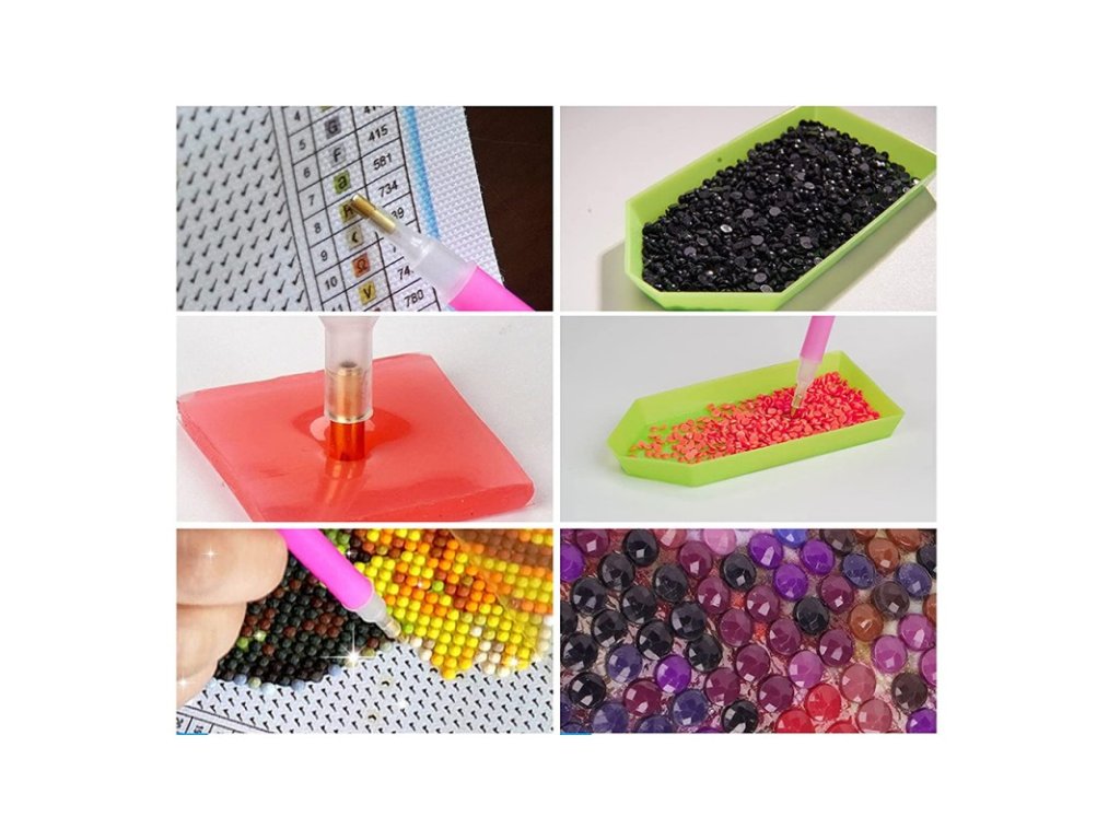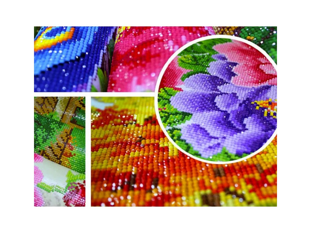 A gyémánt mozaik abból áll, hogy a képen látható kész mintát különböző színű kis gyémántokkal töltik ki.