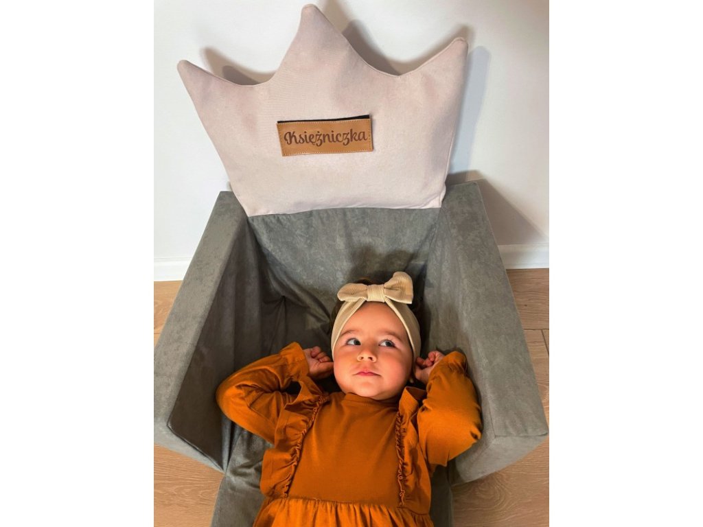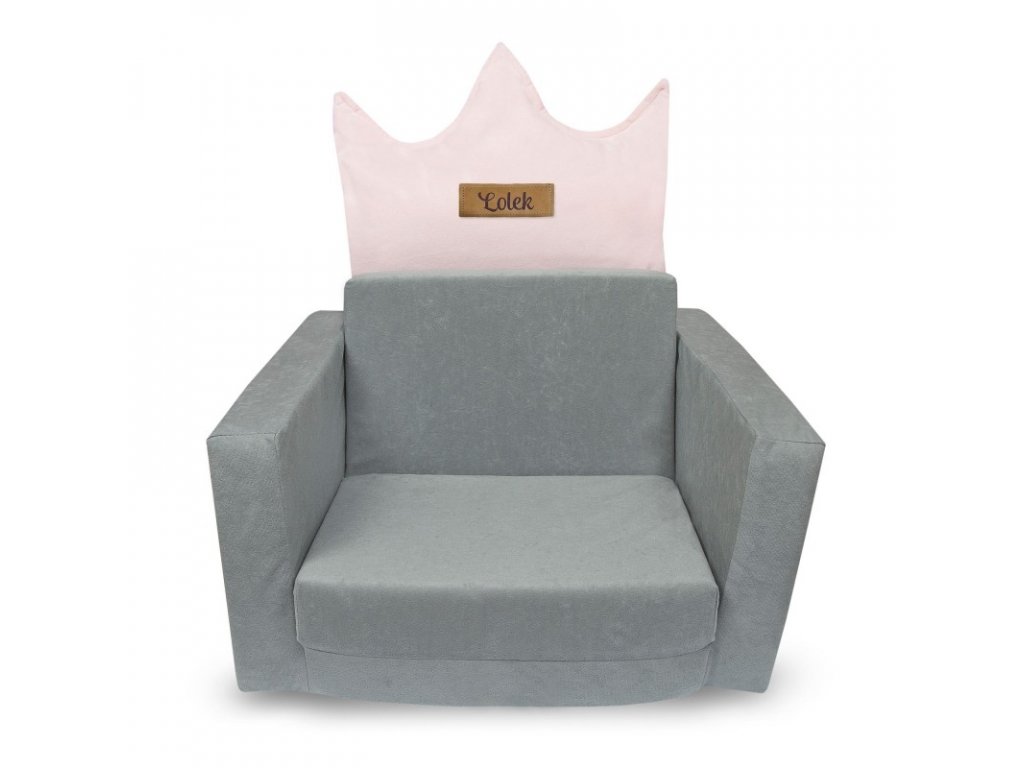 Összecsukható gyerekfotel - Emma koronával - szürke