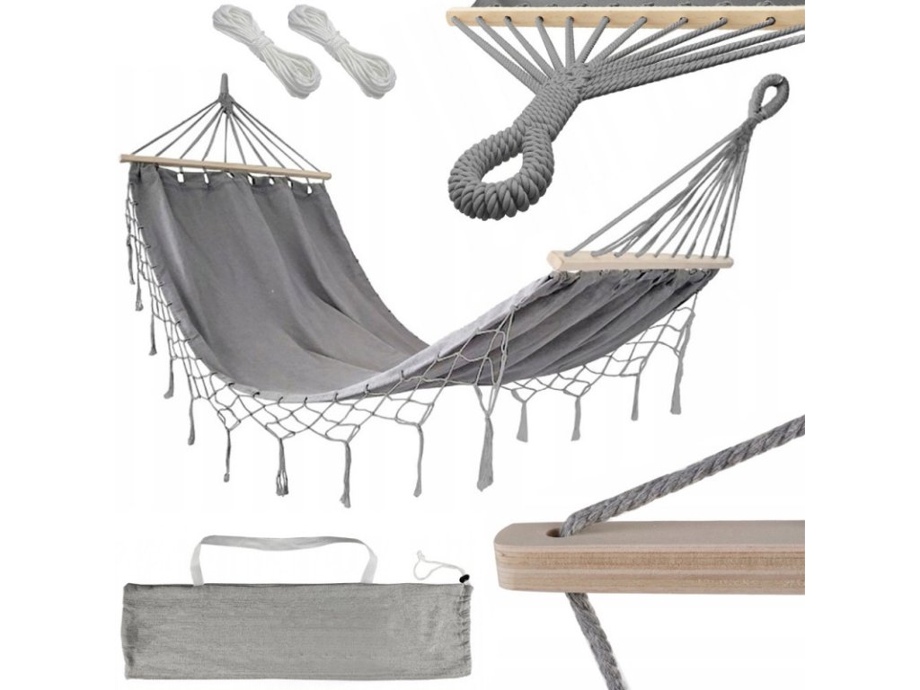 Álmodsz a pihenés pillanatairól a szabadban? Függőágyunk a tökéletes megoldás! Nemcsak kényelmes alátámasztást biztosít a testnek, hanem a kiegészítő huzatnak köszönhetően védelmet is nyújt a napsütéssel és az esővel szemben. Ezért a függőágyunk tökéletes választás a pihenő zónájába! Tartós anyagból, valamint sűrűn fonott kötelekből készült. Mindez tartóssá és légáteresztővé teszi a függőágyat, ami nagyon kellemessé teszi a használatát. Függőágyunk páratlan kényelmet nyújt a nyári pihenés során a teraszon, erkélyen vagy kertben. Az erős anyagoknak és a strapabíró konstrukciónak köszönhetően élvezheti testének stabil támasztását, és élvezheti a boldog pihenés pillanatait a szabadban. A függőágyat bárhová felakaszthatod. Csak kösse mindkét végét egy stabil felületre, például egy rúdra, horogra vagy fára.