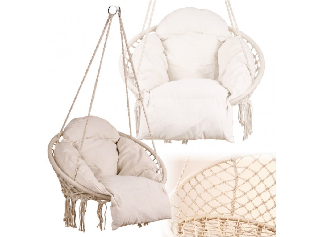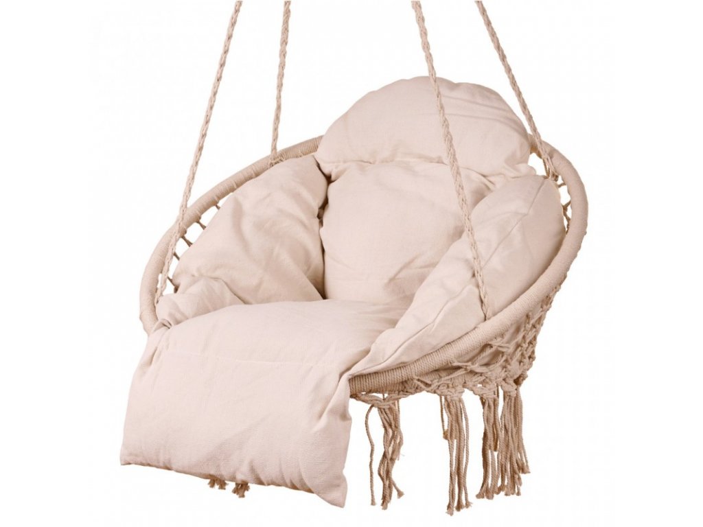 Ideális kertbe és erkélyre. Jó ellenállású pamut kötelekből készült. A fémváz akár 120 kilogramm terhelést is elbír. Az ekrü párna nagy és puha - a nagyobb kényelem érdekében a lábak és a fejtámla meghosszabbításával rendelkezik. A készlet rögzítőelemeket nem tartalmaz. A gólyafészek hinta tartós anyagokból készült, hogy kényelmes helyet biztosítson a hosszú pihenéshez.