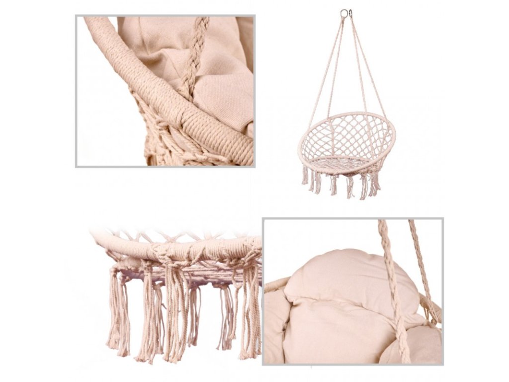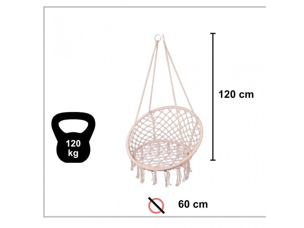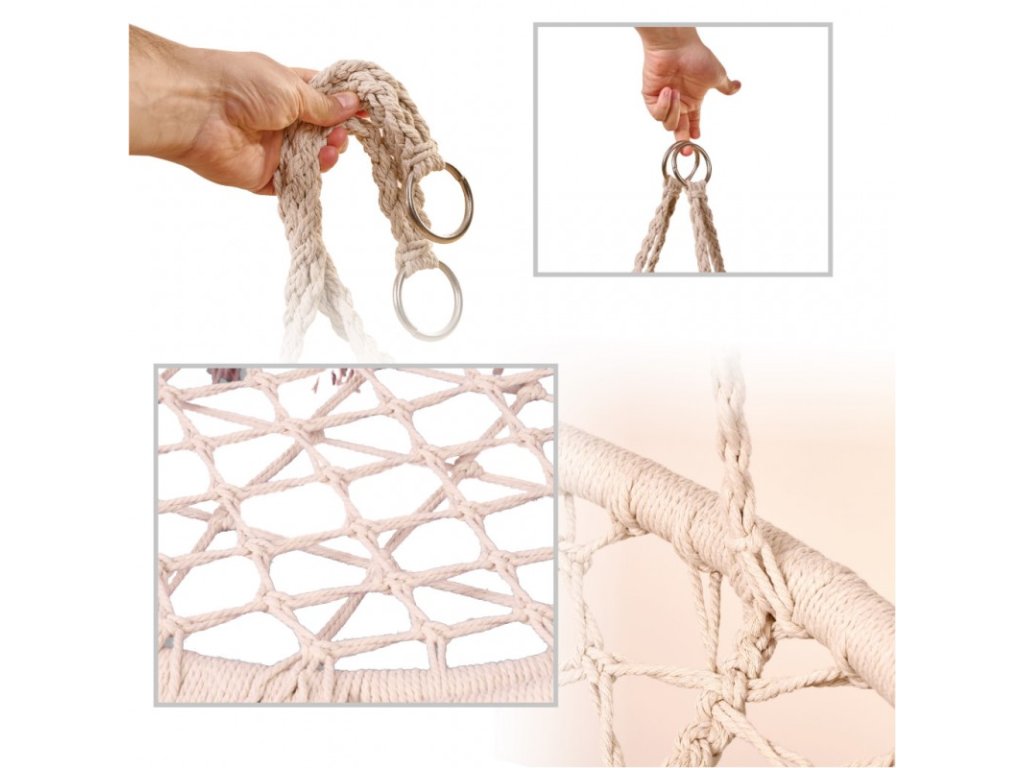 Ideális kertbe és erkélyre. Jó ellenállású pamut kötelekből készült. A fémváz akár 120 kilogramm terhelést is elbír.