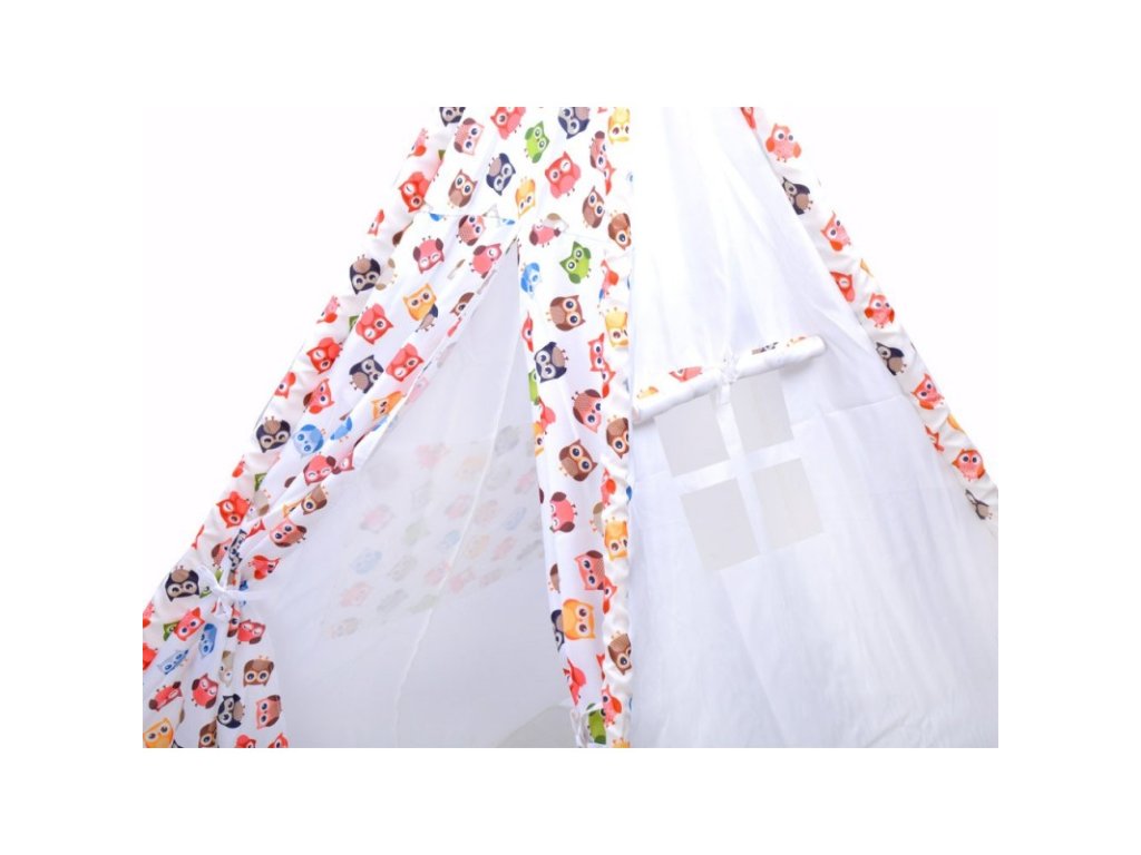 A Teepee-stílusú sátor boldog baglyok mintájával minden gyermek számára tetszeni fog. A gyerekek szeretik a titkokat, és ez a sátor tökéletes hely lesz az összes kincs elrejtésére. A játszósátor alkalmas a gyerekszobába vagy a kertbe. Könnyen mosható anyagból készült, a rudak műanyagból készültek. A wigwam tetszőleges sík helyre felállítható, mackós, babás, autós játszószobában és a kertben is remek szórakozást nyújt a gyerekeknek. A sátor húzózsinórral rendelkezik, amellyel az oldalakat össze lehet kötni a könnyű bejutás érdekében. Nagyon szükséges egy ablak, amin keresztül lehet látni, ha valaki besurran a sátorba.