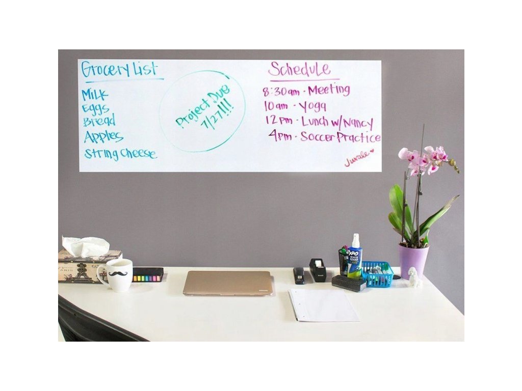 Az öntapadó táblának köszönhetően falai, ajtói és bútorai tökéletes állapotban maradnak. Az öntapadó tábla számos helyen megtalálható, például: irodában, konferenciateremben, iskolában vagy otthon. Csak ragassza a táblát egy sima, zsírtalanított felületre. A tábla mérete az Ön igényei szerint állítható. A tábla nem károsítja a felületet, és nem hagy nyomot a leválás után.