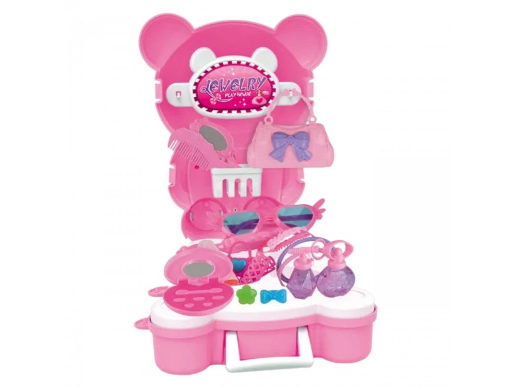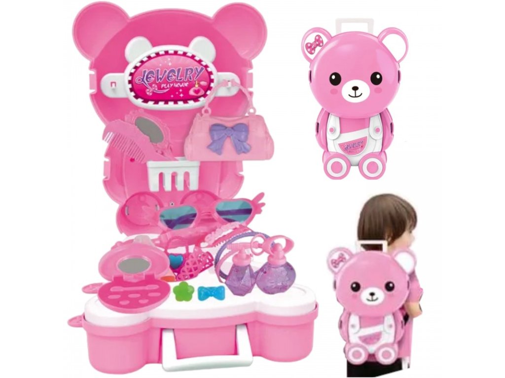 A szemhéjfestékek és rúzsok utánzatpalettájának köszönhetően a kislány érdekes sminket állíthat elő magának és barátainak. A szemüvegek és az aranyos kézitáskák ideálisak az egész megjelenéshez. Ezeknek a bájos kiegészítőknek köszönhetően a kislány igazi hölgynek érzi majd magát. A mellékelt klip segítségével díszítheti frizuráját. A parfümöt imitáló flakonok is érdekes kiegészítői a szettnek.
