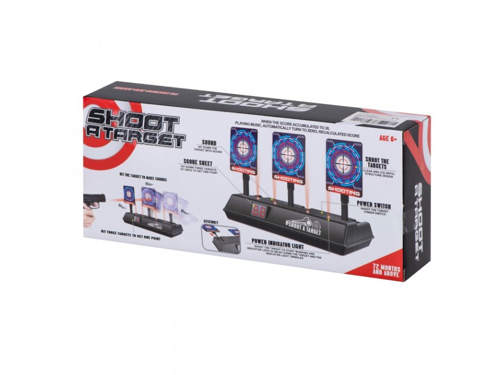 Interaktív automatikus 3 pontos céltábla célzáshoz és lövéshez. A célpontok alkalmasak például Nerf fegyverrel, habgolyós fegyverrel vagy golyós fegyverrel való lövöldözésre.