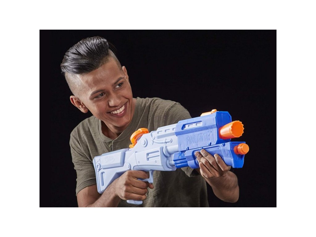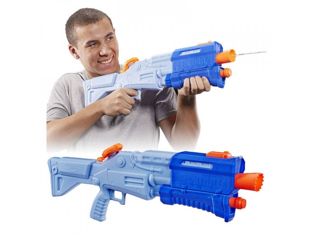 Hasbro Nerf Fortnite TS-R vízipisztoly a népszerű Fortnite játékból licencelt! Ajánlat minden játékosnak, aki szereti a lövöldözős játékokat a számítógépes világból egy igazi vízi csatába átvinni. A pisztolyban lévő tartály 1 literes, könnyen tölthető és használható. Csak nyissa ki a kupakot, töltse fel a tartályt, és a vízsugár azonnal kitör, amint gyermeke elkezdi oda-vissza pumpálni a fogantyút. A pisztoly teljes egészében műanyagból készült, könnyű, kézre álló és könnyen használható. A játék vízpisztoly az egyik legnépszerűbb játék, amelyet a gyerekek nyáron használnak, legyen szó a tengerről, az udvarról vagy a medence mellett. A velük való játék nagy örömet okoz minden gyermeknek. Előnye a hűtés a forró napokon. Gyermekei arcáról az öröm biztosan nem tűnik el e szórakozás alatt. Így nem marad más hátra, mint elővenni a fegyvert, és elkezdeni a saját, nyári felfrissüléssel teli csatát!