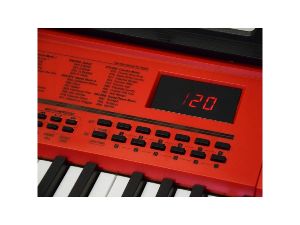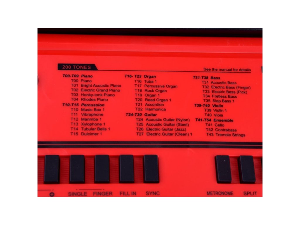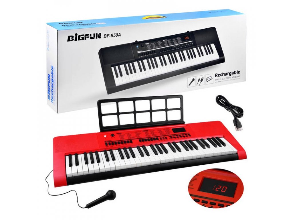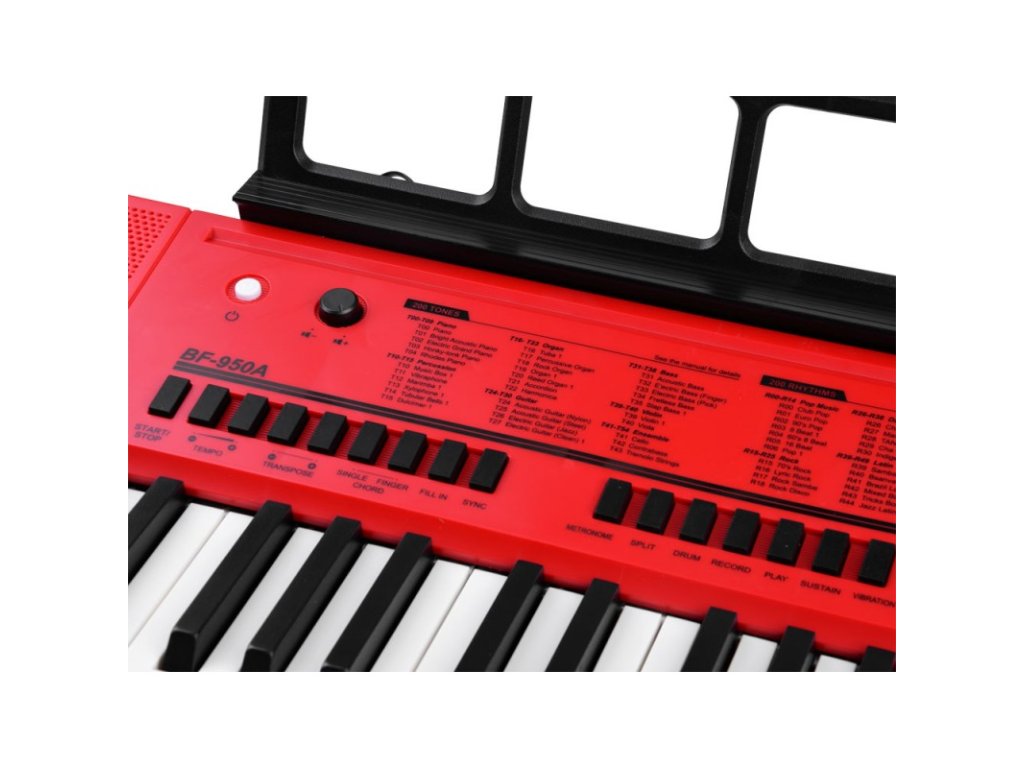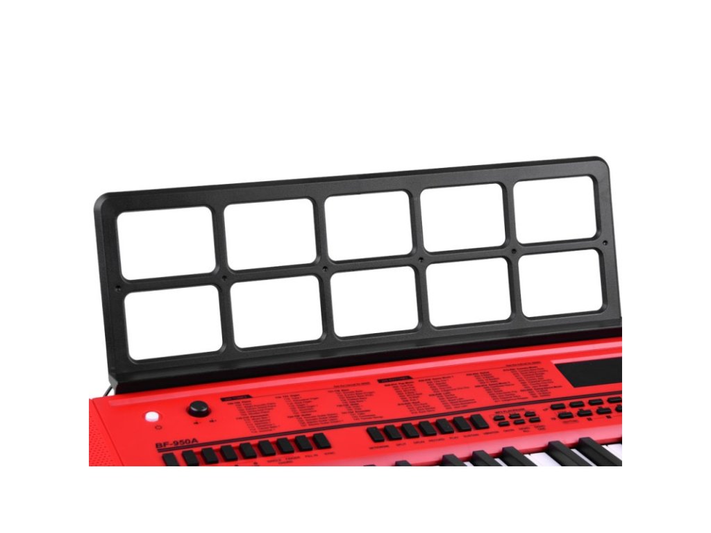 A beépített akkumulátornak köszönhetően a gyermekeknek szánt nagyméretű elektronikus billentyűzet lehetővé teszi, hogy körülbelül 1 órán keresztül játssz az elektromos hálózathoz való hozzáférés nélkül, ami minden kezdő zenész álma. Modern dizájn, nagyon gondos megmunkálás és minden részletre való odafigyelés jellemzi, ami miatt úgy néz ki, mint egy professzionális hangszer. A BF-950A billentyűzet modell számos nagyszerű tulajdonsággal rendelkezik. Alkalmas kezdőknek, ideális gyakorlásra és zenei készségek fejlesztésére. Biztosan alkalmas lesz mindenféle házibulira vagy iskolai előadásra.