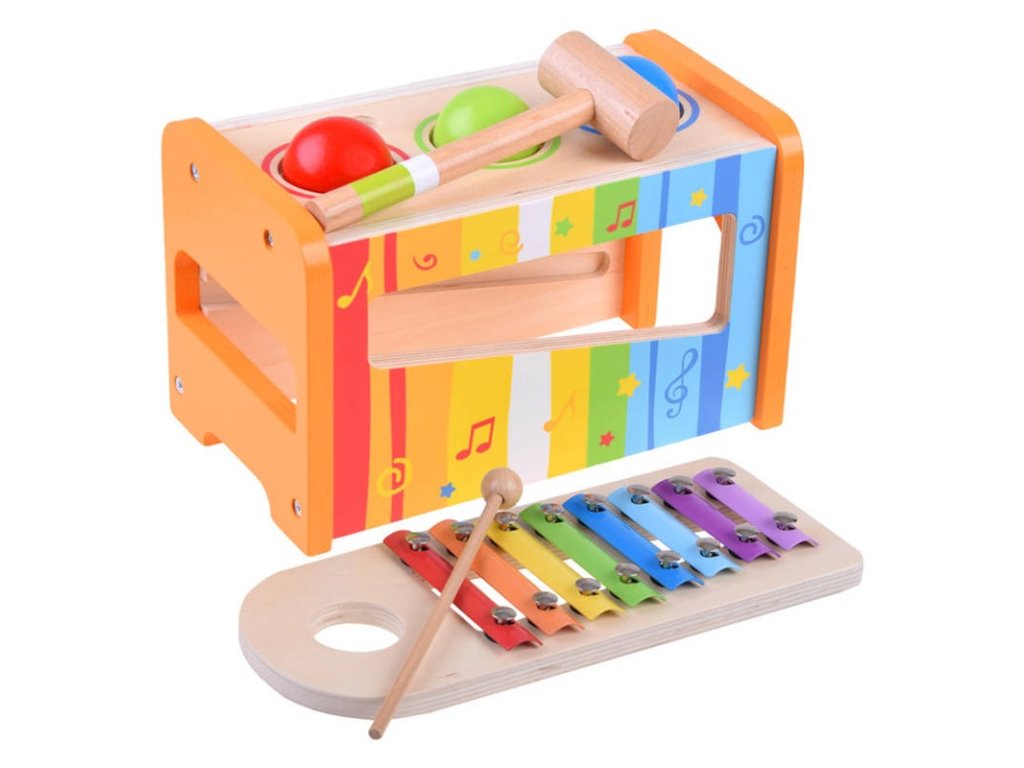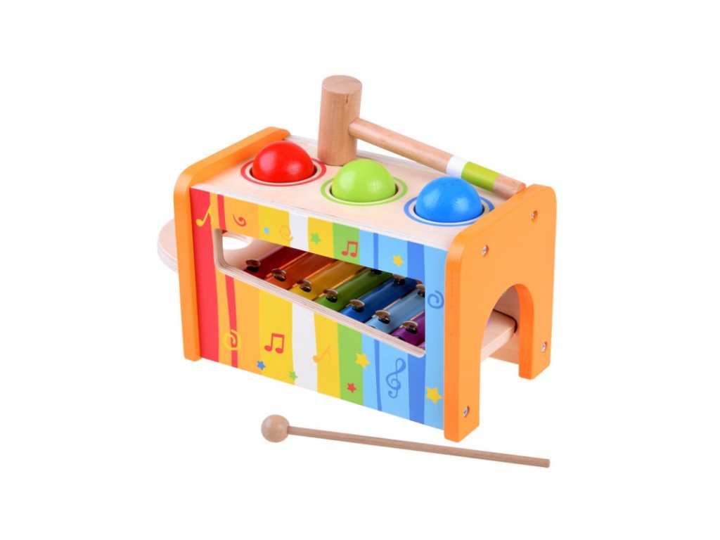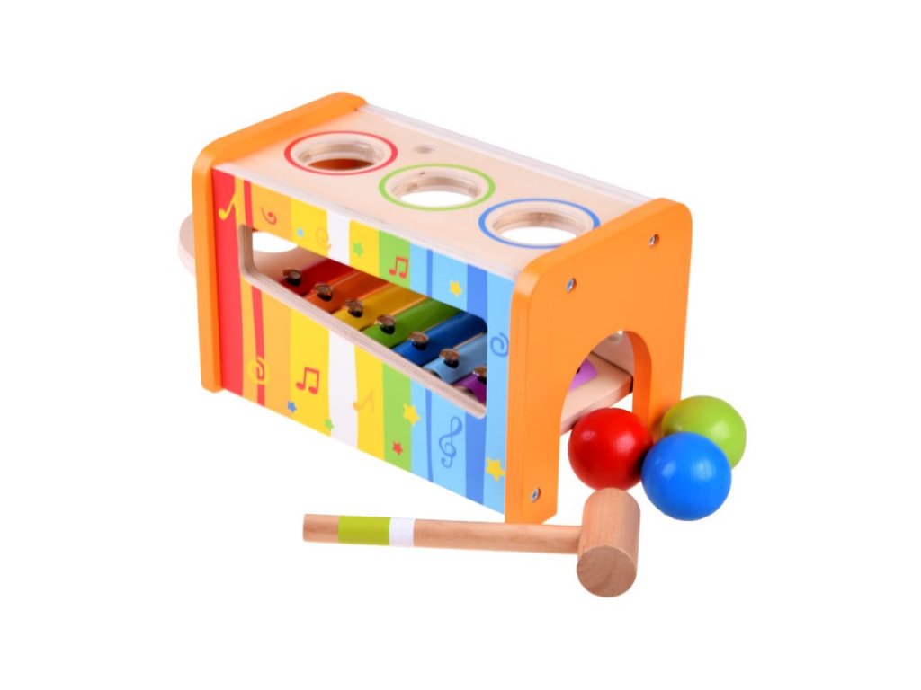 Fa xilofon kalapáccsal gyerekeknek - Rainbow 2in1
