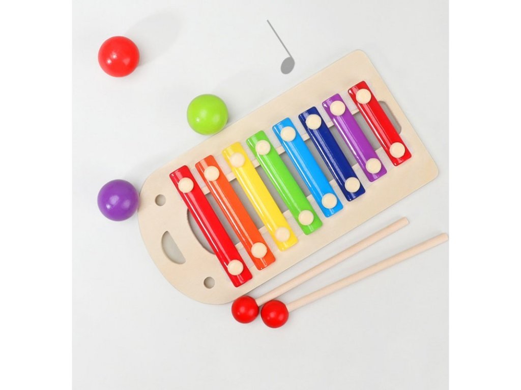 A színes fa T-Rex kalapáccsal és xilofonnal remek játék nem csak a dinoszauruszok szerelmeseinek, hanem a sok energiával rendelkező gyerekeknek is. A kalapáccsal való játék során a gyermek nemcsak felesleges energiát szabadít fel, hanem fejleszti a szem-kéz koordinációt és a kézizmokat is. A játék során élénk színű golyókat kalapálnak úgy, hogy azok átesjenek az alap megfelelő lyukain. Ez nem is olyan egyszerű feladat, így a gyerek sokáig elfoglalt lesz, te pedig a háztartási munkára tudhatod magad. Ezenkívül a készlet tartalmaz egy klasszikus xilofont is, amely segít a gyermeknek a zenei hallás elsajátításában, és lehetővé teszi a szülők számára, hogy már korán felismerjék a gyermek lehetséges zenei tehetségét.