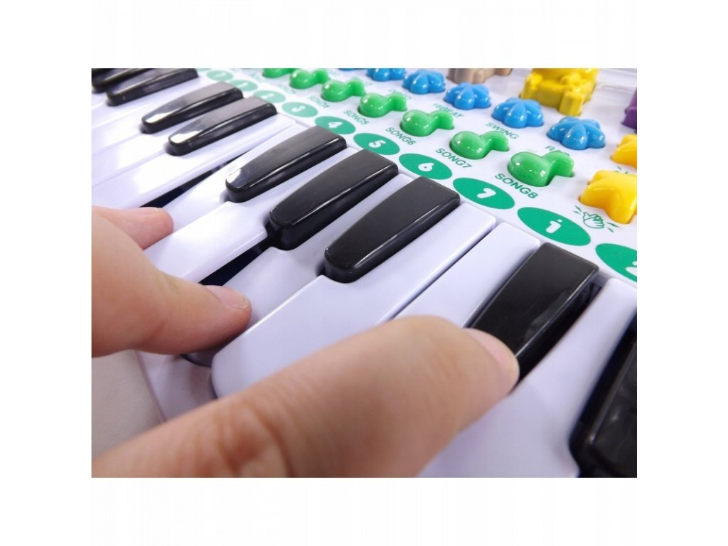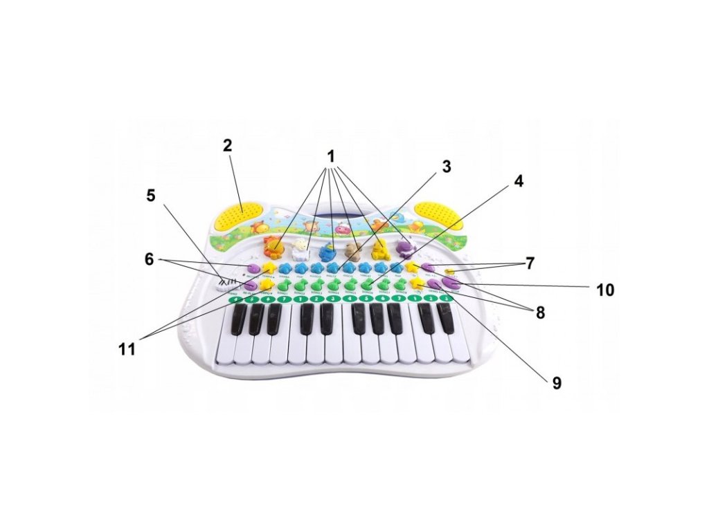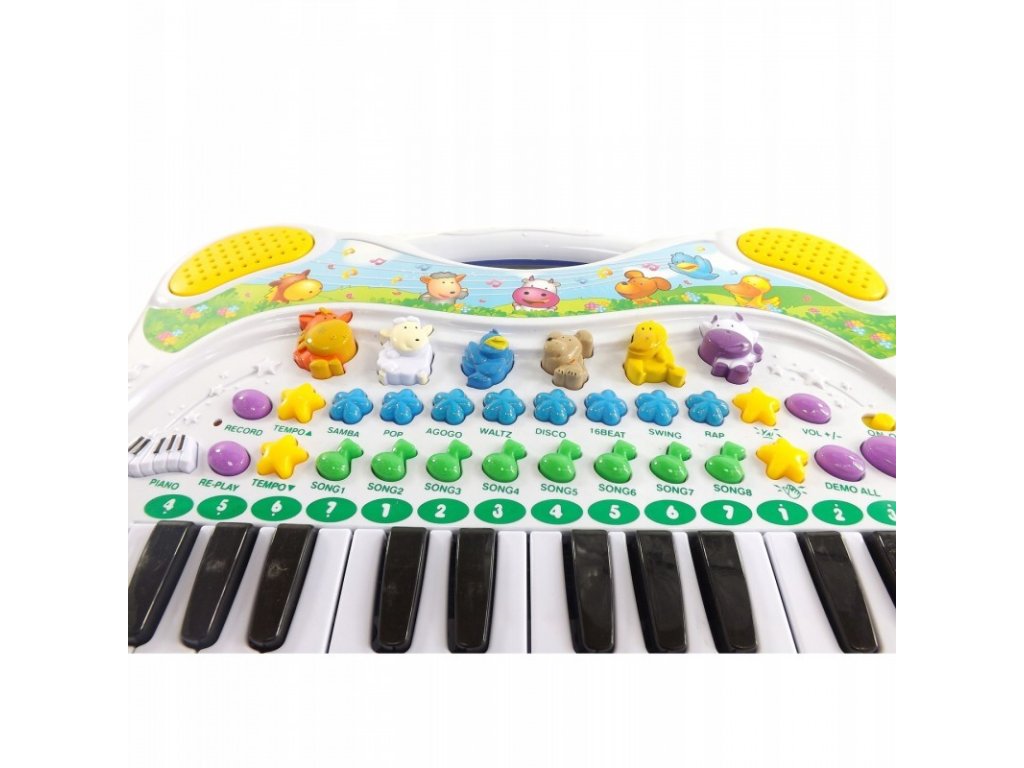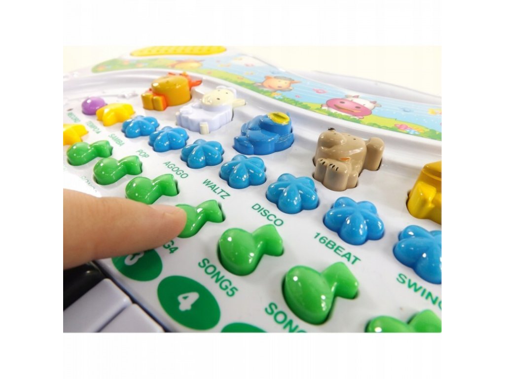 A gyermekbillentyűzetek egyedülálló lehetőséget kínálnak a szülőknek arra, hogy megtudják, hogy gyermekkorában felnő-e egy kis Mozart az otthonában. Ezeken a gyerekbillentyűzeteken az első gombsor a haszonállat dizájn gombok, melyek megnyomásával utánozzák az adott állatfajok által kiadott hangokat és a belőlük keletkezett dallamokat. Ráadásul a hat állat közül egy kiválasztása után a billentyűk az adott állat hangját adják ki különböző hangnemben, ami rendkívül szórakoztató a gyerekek számára. A közvetlenül az állatok alatti kék virágok kialakításában található gombsor különböző zenei stílusokkal van jelölve, amelyek a billentyűk lejátszásakor használhatók. A hangjegyek formájú zöld gombok elkezdik rögzíteni a 8 különböző dallam egyikét. A billentyűzet kialakításában található gomb egy igazi zongora módjára indítja el a klasszikus játékot, a bal oldali lila gombok segítségével pedig rögzíthető, majd lejátszható a játék. A készülék jobb oldalán található két lila gombbal lehet beállítani a hangerőt és megszakítás nélkül elindítani a demófelvételeket, illetve a STOP gomb megnyomásával egy adott dallamot játszhatunk le. A bal oldalon lévő két sárga csillag állítja be a lejátszás tempóját, a másik oldalon lévő kettő pedig biztató meglepetést és tapsot ad.