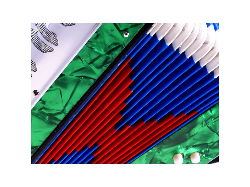 Az új gyermekharmonika a kíváncsi és bátor kiszenészek számára készült, akik szeretik a zenét annak minden formáját. A gyermeknek szánt harmonika úgy néz ki, mint egy igazi hangszer, fejleszti a gyermek motoros készségeit, befolyásolja a zenei érzékenységet és a hangok megkülönböztetésének képességét. A működési elve ugyanaz, mint egy igazi szájharmonikáé - a hangzáshoz fejleszteni és harmóniát kell teremteni. Ezen kívül a harmonikán vannak billentyűk és basszusgombok. A fogantyú és a bőr vállpánt megkönnyíti a harmonika kényelmes és biztonságos tartását. A pattintható zár védi a játékot a sérülésektől, ha nincs használatban. A gondosan és esztétikusan elkészített hangszer inspirációt jelenthet a gyermek számára a továbbtanuláshoz. A zene jelenléte pozitív hatással van a gyermek fejlődésére. A játék célja, hogy egyszerre több szinten is serkentse a gyermek fejlődését. Tökéletes játék a művészi lélek számára.