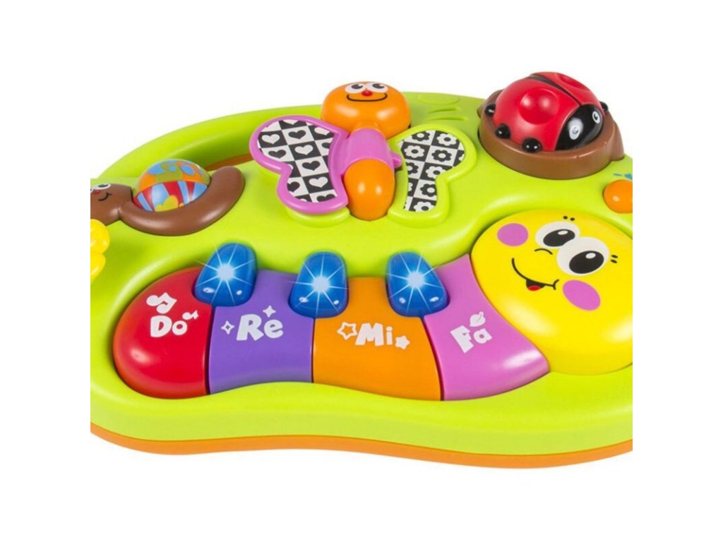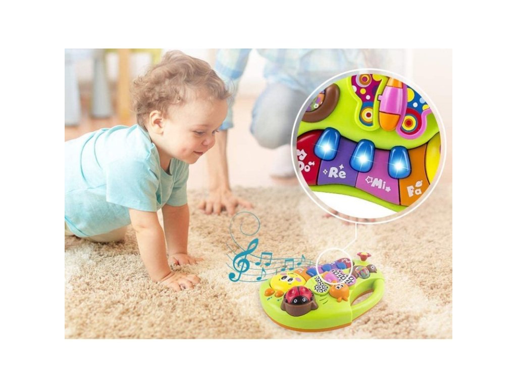 A kicsiknek szánt zongora aranyos hernyó motívummal minden gyermeket elragad majd. A játék nagyon gondosan és precízen készült, hang- és fényeffektusokkal minden gyermek számára lebilincselő szórakozás lesz. A babák minden érzékszervükkel megismerik az őket körülvevő világot. A vidám dallamok, amelyek fejlesztik gyermeke zene iránti érdeklődését, és egyben megtanítják megkülönböztetni a dallamokat, hasznosak lesznek a gyermek egészséges fejlődésében. Emellett a szép, élénk színek serkentik a gyermek látását és felkeltik a játék iránti érdeklődést. A gyermek fejlődését és különösen motoros készségeit nagymértékben serkenti a környezet. Éppen ezért olyan fontos, hogy azok a játékok, amelyekkel a gyermek játszik, ösztönözzék a motoros készségek fejlesztését, új mozgásokra, készségekre tanítsák a gyermeket.