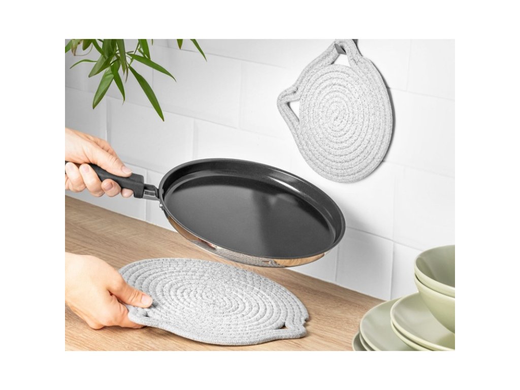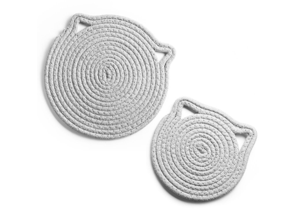 Praktikus macska formájú szőnyegek forró edényekhez, serpenyőkhöz vagy sütőformákhoz. Ezek a bájos szőnyegek minden bizonnyal jól jönnek a konyhában, és ideálisak a munkalapok, konyhai felületek és terítők védelmére a magas hőmérséklet okozta sérülésektől. Erős, hőálló szövésű pamutból, jellegzetes macskafülekkel, különleges helyet foglalnak el a macskakedvelők konyhájában, bár mindenki számára hasznosak :)