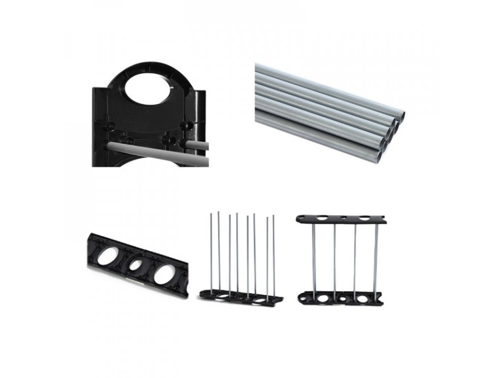Felépítésének köszönhetően a cipőtartó nagyon könnyen összeszerelhető. A cipőtartó négy összekapcsolt blokkból és 8 darab csőből áll. A speciális illesztéseknek köszönhetően könnyedén meghosszabbíthatja a cipőtartót bármilyen magasságig felfelé. 2 vagy több cipőtartó vásárlásával megnövelheti a polcot és megkétszerezheti a cipők számára fenntartott helyet. A csomagtartó könnyű és stabil.