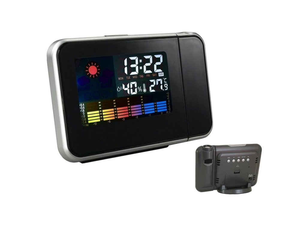 Digitális meteorológiai állomás órával, ébresztőórával, naptárral és beépített lézeres idővetítővel.