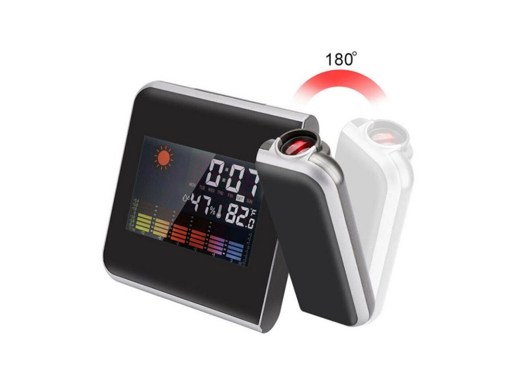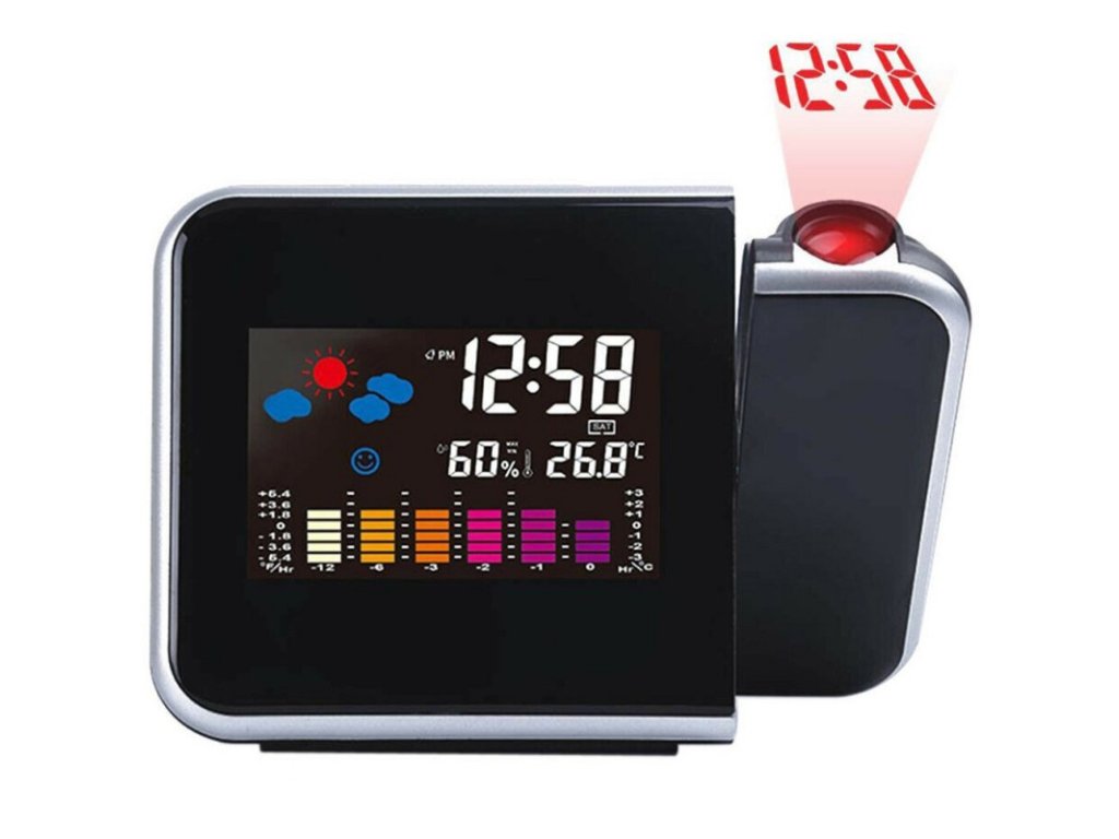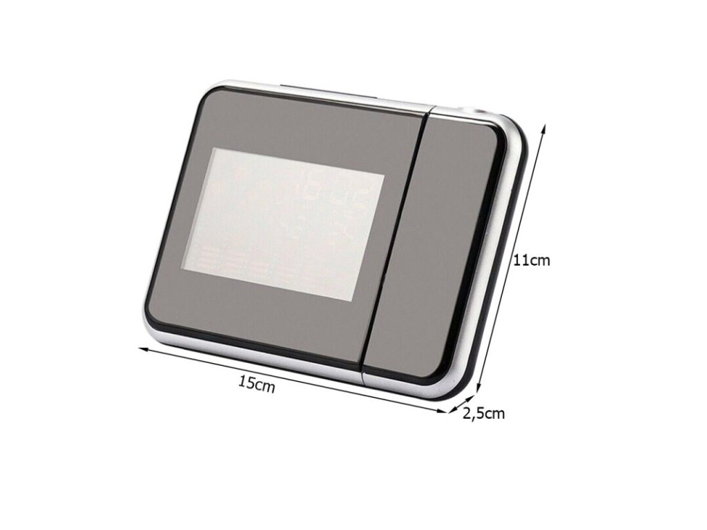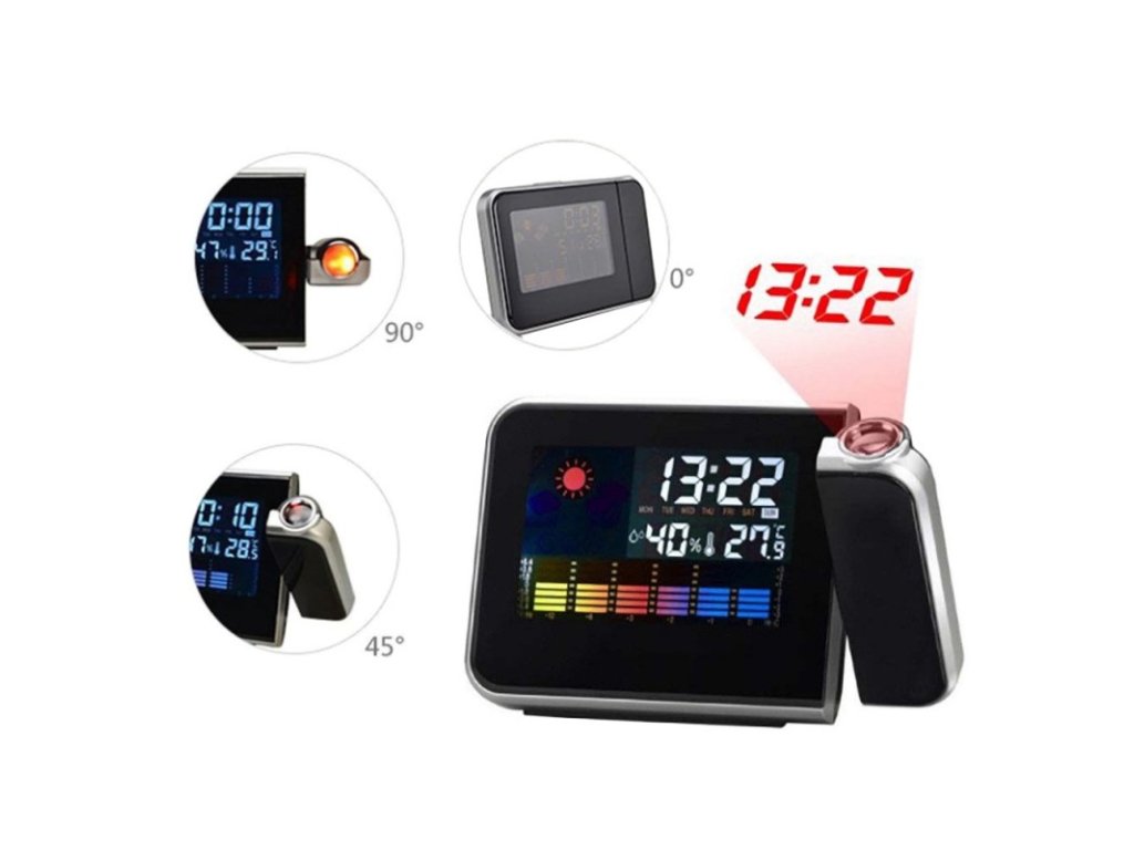- Ráadásul az idő a falon vagy a mennyezeten is megjeleníthető az állítható projektor használatának köszönhetően, amely teljes sötétségben is tökéletesen láthatóvá teszi.