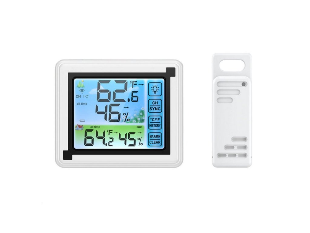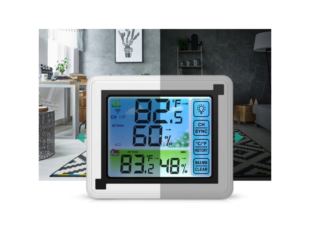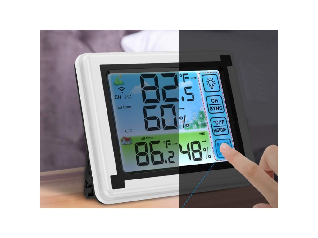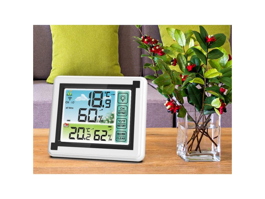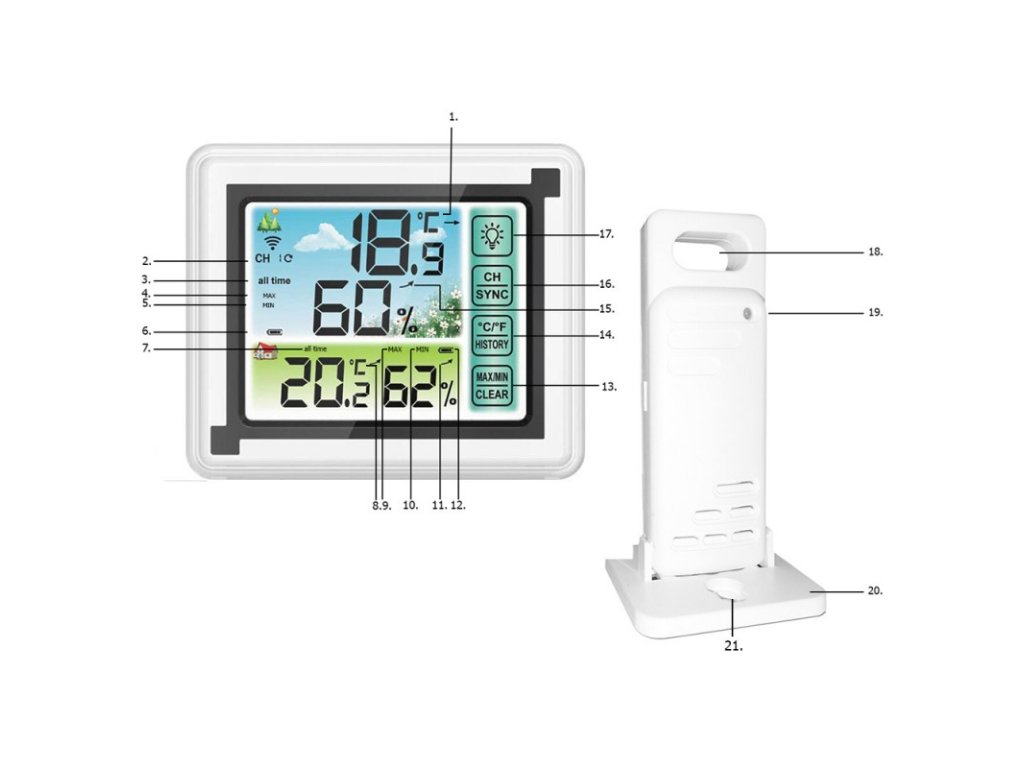 MODERN ÉS GYAKORLATI - a vezeték nélküli meteorológiai állomás egy modern és praktikus kiegészítő, amely áttekinthető kijelzővel rendelkezik, amelyről könnyedén leolvashatja a mért értékeket. A készülék 4 gombbal van felszerelve: képernyő háttérvilágítás, ch/sync - csatornaválasztás vagy leolvasás szinkronizálása, fokok/előzmény - mértékegységek váltása, rekord előzmények, max. min./delete – rekordok minimális és maximális száma, valamint a memória törlésének lehetősége.