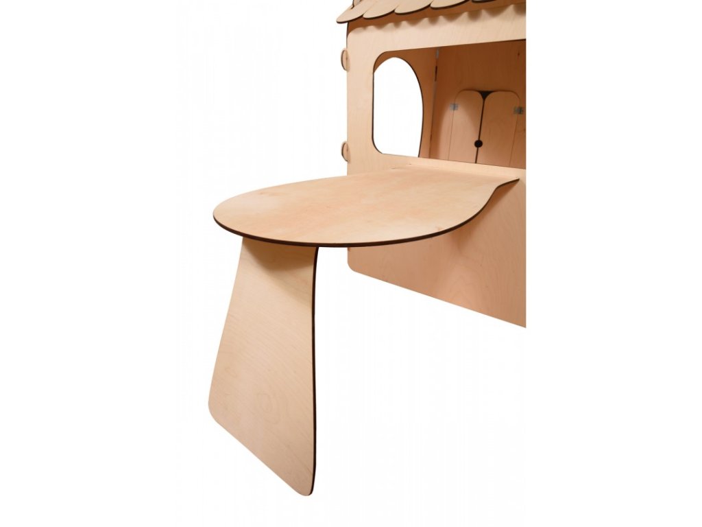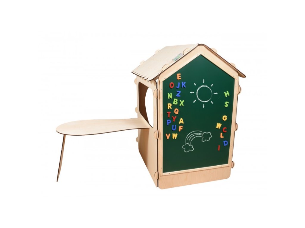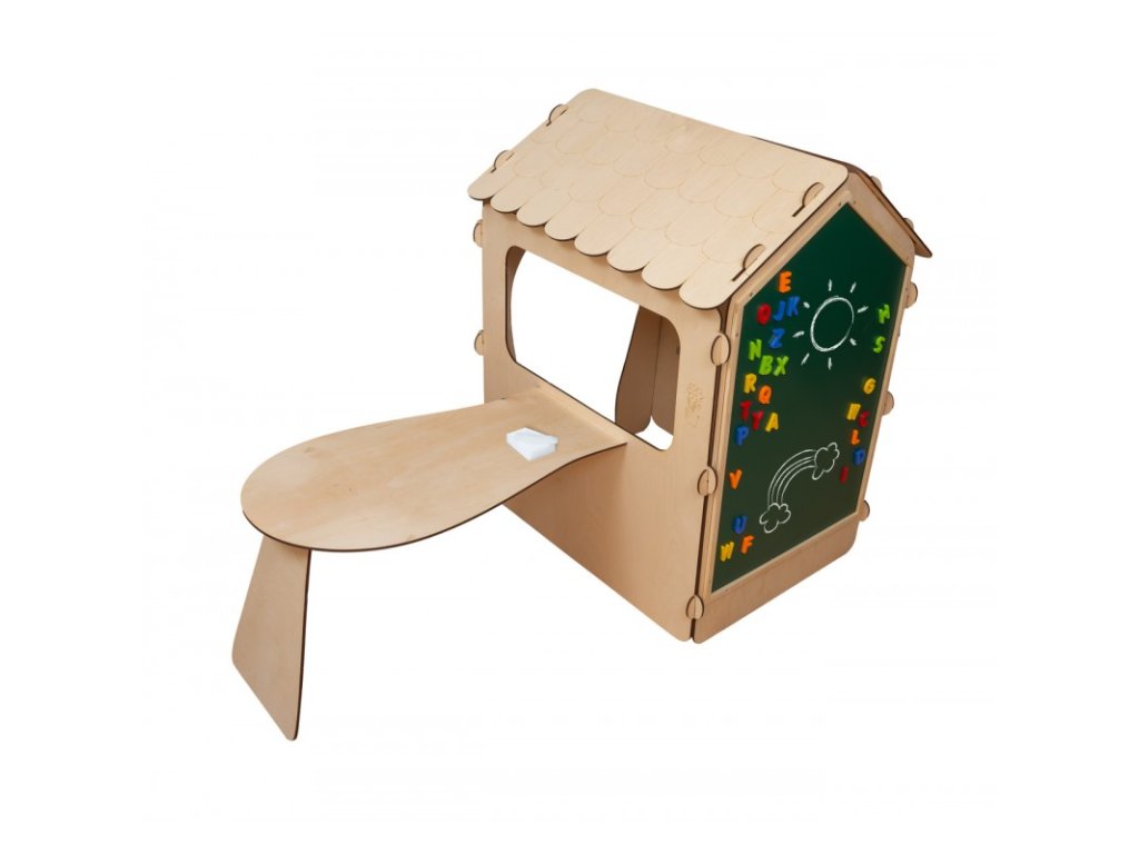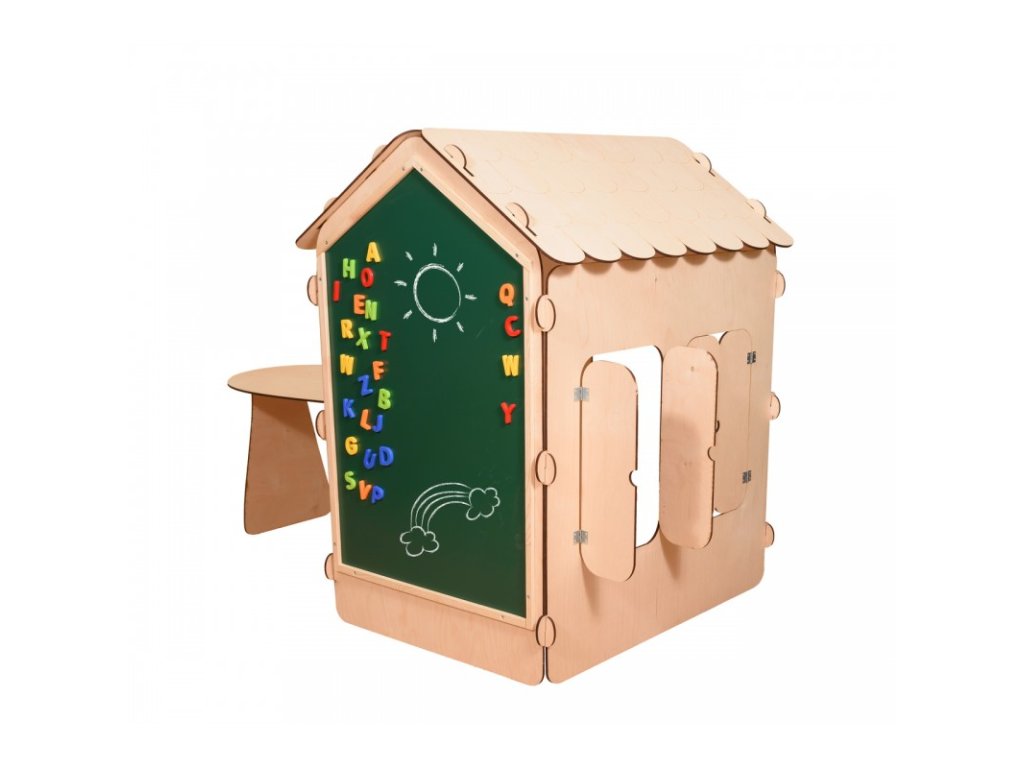 A ház tömör fából készült, amely biztosítja az időjárási hatásokkal szembeni ellenállást és a hosszú élettartamot. Ez a többfunkciós táblával felszerelt játszóház teret biztosít a gyerekeknek, hogy játékon keresztül tanuljanak, és fejleszthessék írás- és rajzkészségüket. A házban lévő asztal elég nagy ahhoz, hogy játékteret biztosítson, legyen szó társasjátékokról, kreatív tevékenységekről vagy akár kisebb piknikről a barátokkal.