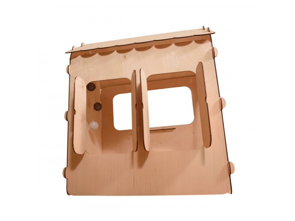 A belső teret a gyermekek kényelmét és biztonságát szem előtt tartva alakították ki, az ablakok pedig természetes megvilágítást és megfelelő szellőzést biztosítanak. A ház külső megjelenése egyszerű és természetes, így minden kert ideális kiegészítője.