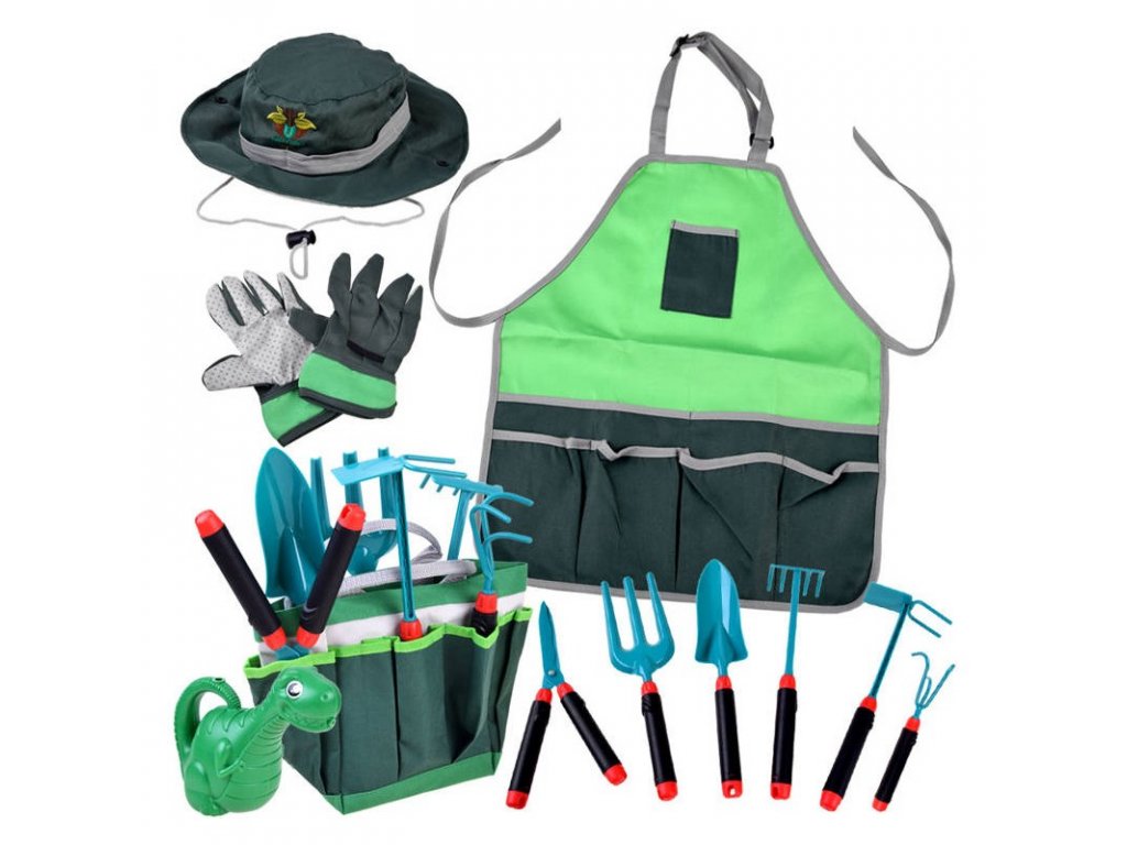 A kiskertész szerszámkészlete és védőruházata igazi mókává varázsolja a kertben való játékot.