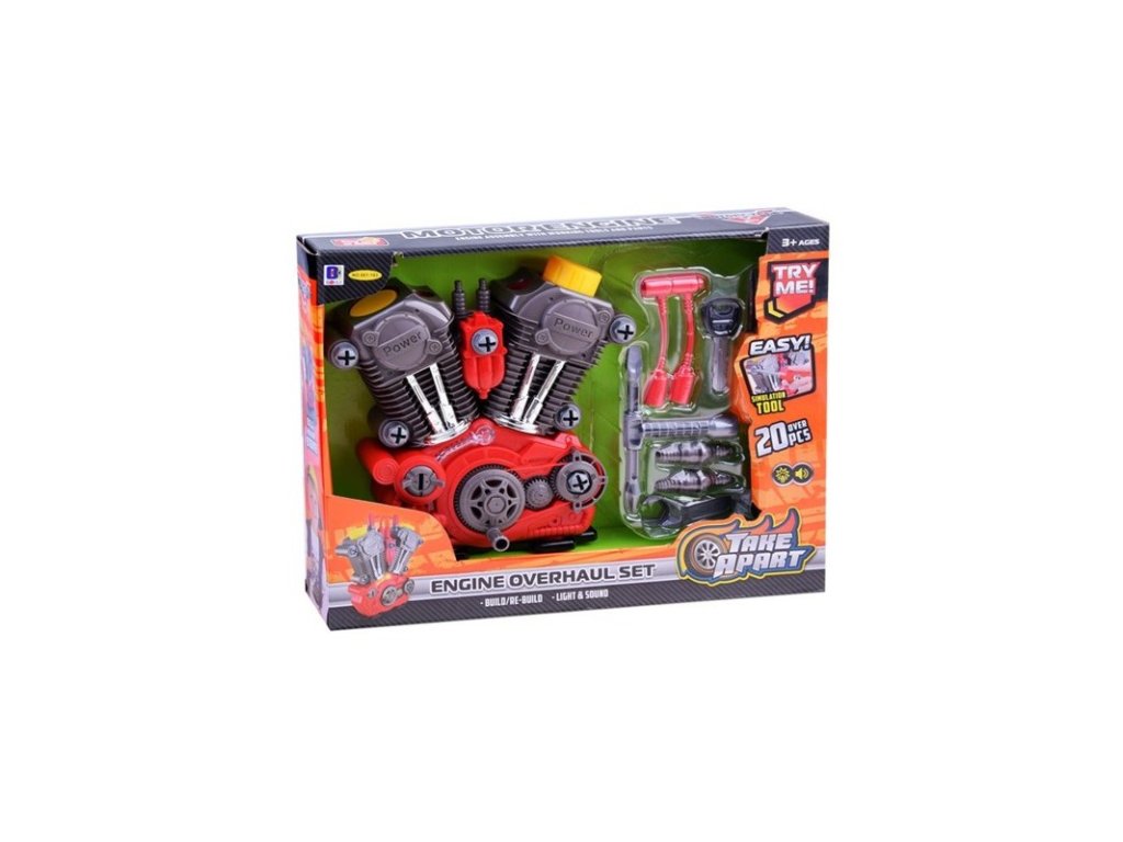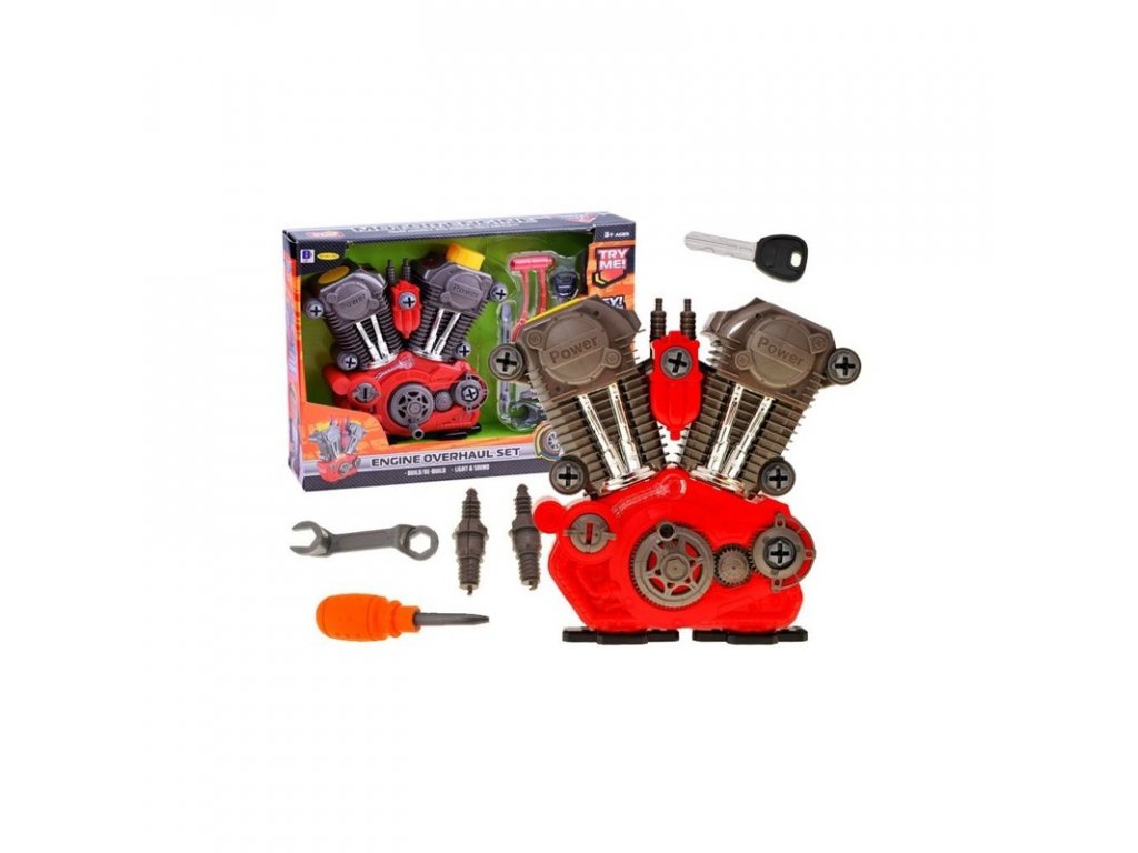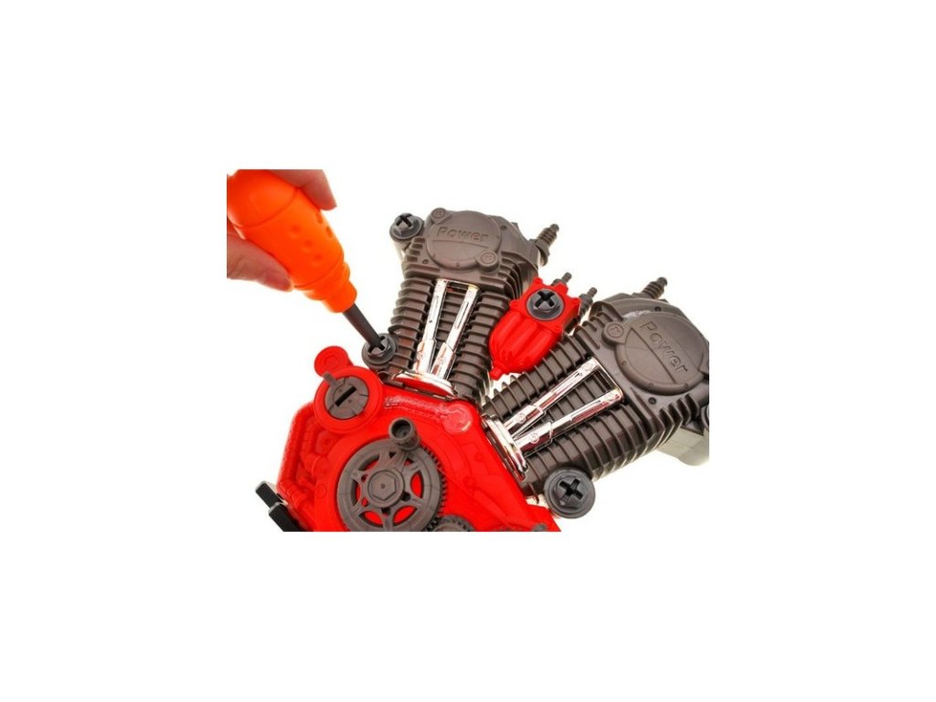 Indítsd a motort! Teljes újdonság a kis autószerelőnek! Játék motor formájában hangeffektusokkal, szétszerelési lehetőségekkel, a motordugattyúk működésének ellenőrzésével.