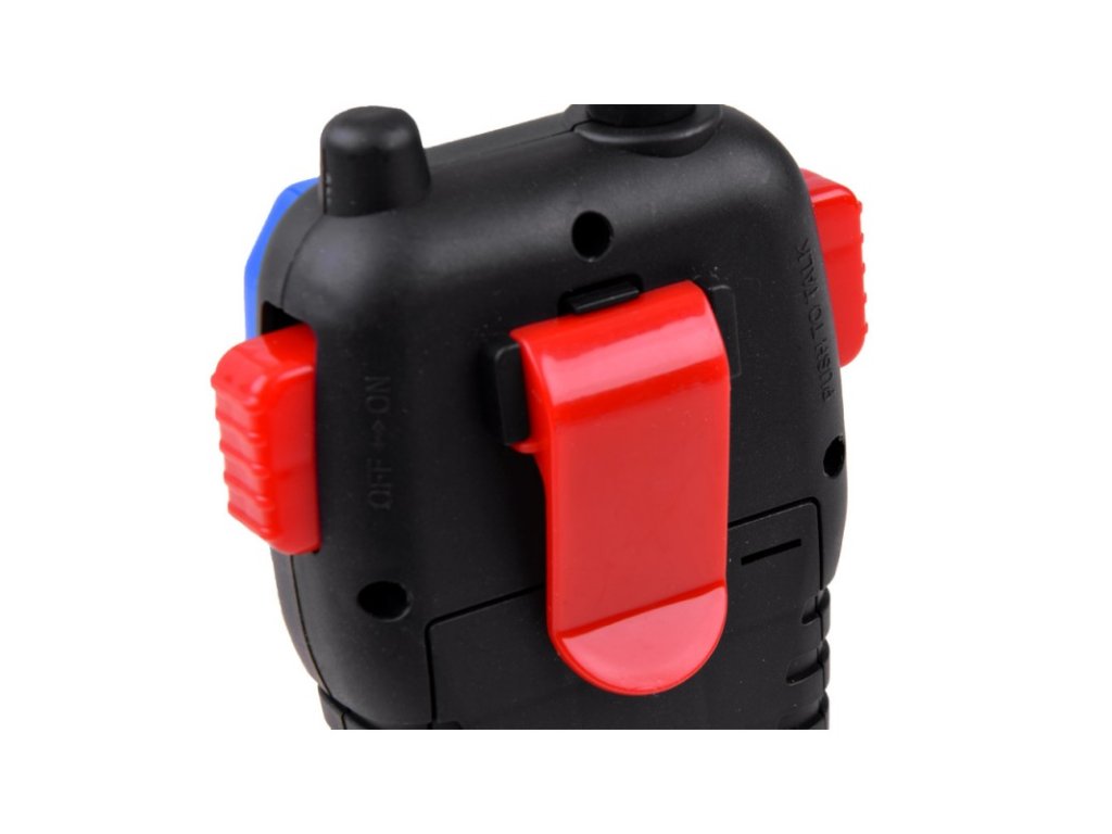 Rádiók azoknak a gyerekeknek, akik szeretnek a szabadban játszani. Ideális üldözésekhez, katonai küldetésekhez, rendőri razziákhoz vagy más képzeletbeli játékokhoz. A gyermekrádiók nagyon jól elkészítettek, és mindenekelőtt könnyen kezelhetők. Mindössze annyit kell tennie, hogy minden rádióba helyezzen elemeket, és kapcsolja be a készülék jobb oldalán található ON / OFF gombbal. Ha azt szeretné, hogy a másik személy meghalljon minket, amikor beszélünk, nyomja meg a bal gombot. Ha hallani szeretné, mit mond a másik személy, engedje fel ismét a gombot. A színes rádió övcsíptetővel rendelkezik, így játék közben szabad kezet tarthat. Az elemek behelyezéséhez óvatosan csúsztassa lefelé a kapcsot, hogy felfedje az elemtartó fedelét. A walkie-talkie-ban lévő antenna rugalmas, gumi bevonattal van bevonva, amely megóvja a sérülésektől. Jó időjárási körülmények között, nyílt térben a készülék lehetővé teszi, hogy két személy körülbelül 35 m távolságra kommunikáljon.