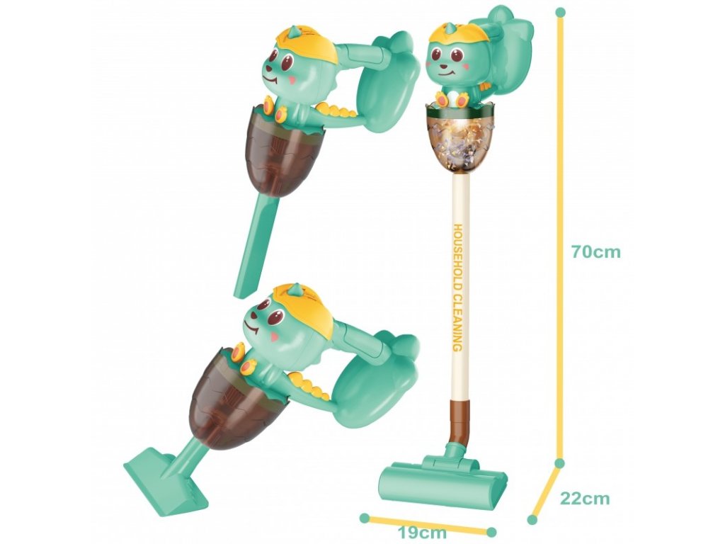 A Woopie márka 3 az 1-ben Dino porszívója ideális ajánlat kis háztartási kisegítőknek. A szívó funkció, a hang és a fények még valósághűbbé és vonzóbbá teszik a takarítási játékot. Az első kattintás a fogantyún elindítja a porszívót, a második egy vidám dallamot játszik le, a harmadik pedig kikapcsolja a porszívót. A kivehető hulladékgyűjtő könnyen üríthető. A Dino porszívó 3 kefés, így a gyermek 3 üzemmódban tudja használni a porszívót. A játék kiváló minőségű anyagokból készült, amelyek biztonságosak a gyermekek számára. A porszívó kényelmes fogantyúval rendelkezik, melynek köszönhetően a gyermek egyik helyről a másikra hordozhatja a porszívót. Remek ajándék, ha segítünk a gyereknek utánozni a szüleit, mert melyik gyerek ne szeretne felnőtt lenni?