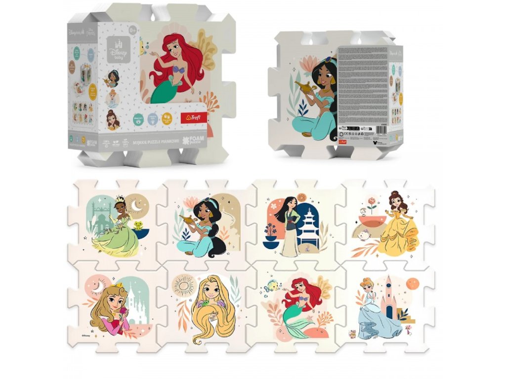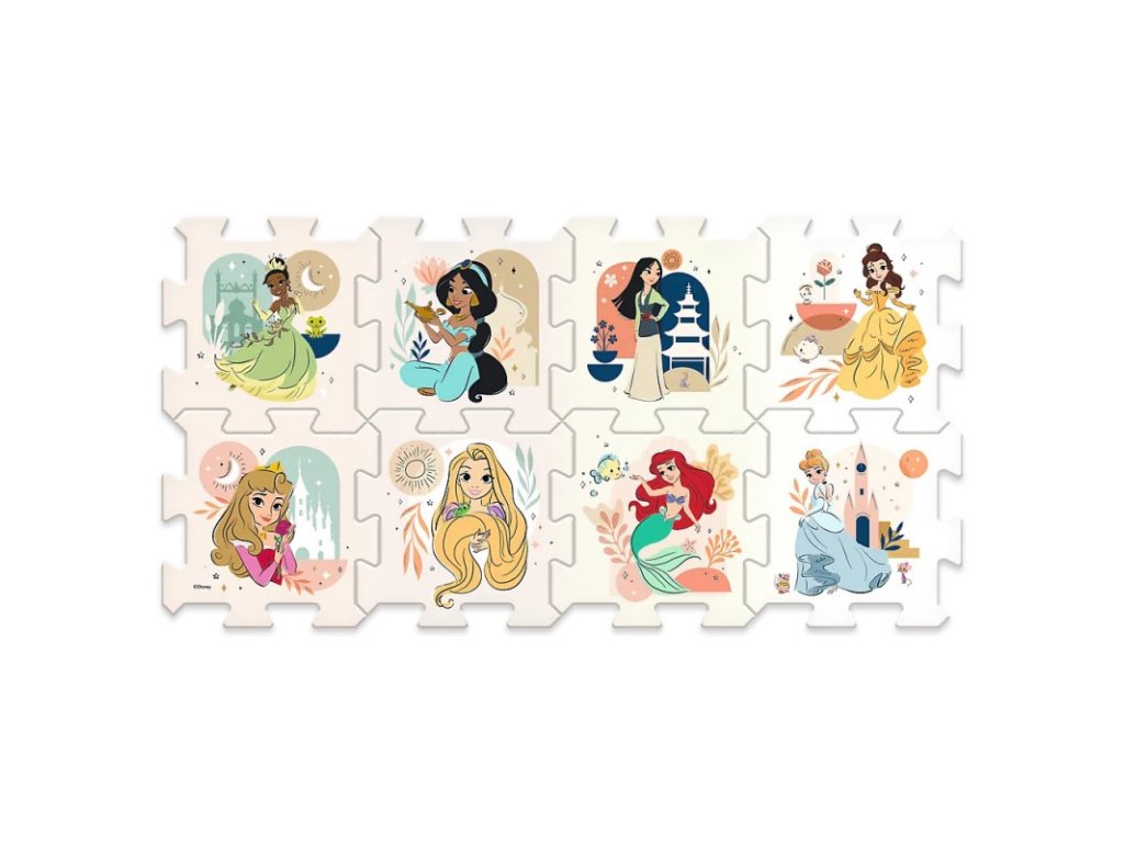 A készlet nyolc gyönyörű puzzle-darabot tartalmaz, amelyek mindegyike tematikusan a Disney hercegnők egyikére koncentrál: Tiana, Jázmin, Mulan, Bella, Aurora, Rapunzel, Ariel és Hamupipőke. Mindegyik darab élénk és színes, ami serkenti a gyerekek fantáziáját, és még szórakoztatóbbá teszi a játékot.