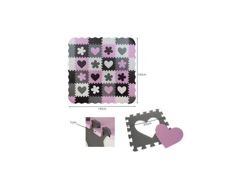 Hab puzzle földön 16db - rózsaszín szív 30x30cm