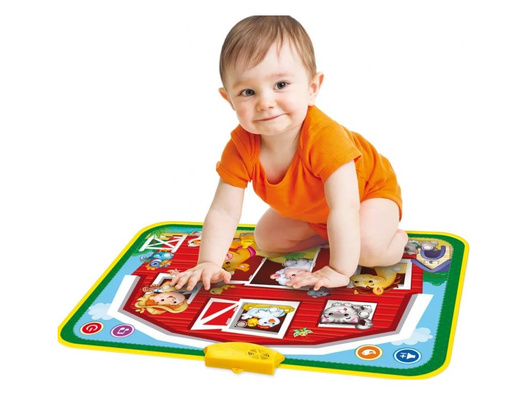 A hangokkal ellátott gyerekszőnyeg kisgyermekek számára készült. A színes, puha szőnyeg kiváló minőségű anyagokból készült. Fedezze fel a hangokat és dallamokat az egyes képek megnyomásával a babaszőnyegen. Gyermekei megismerhetik a tanyán élő állatokat, és gyönyörű mondókákat tanulnak. Ültessük le a gyereket a szőnyegre, és hallgassunk gyönyörű dallamokat, állathangokat és lengyel nyelvű verseket. Az egyes funkciók a kiválasztott kép megnyomásával aktiválhatók. A hangerő a padról szabályozható. A játszószőnyeg nagyszerűen támogatja gyermeke fejlődését, lehetővé téve számára, hogy szórakoztató módon tanulja meg az állatok nevét és hangjait. A játszószőnyeg kellemes tapintású és nem foglal sok helyet.