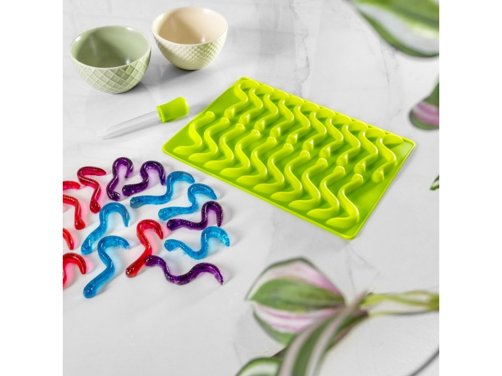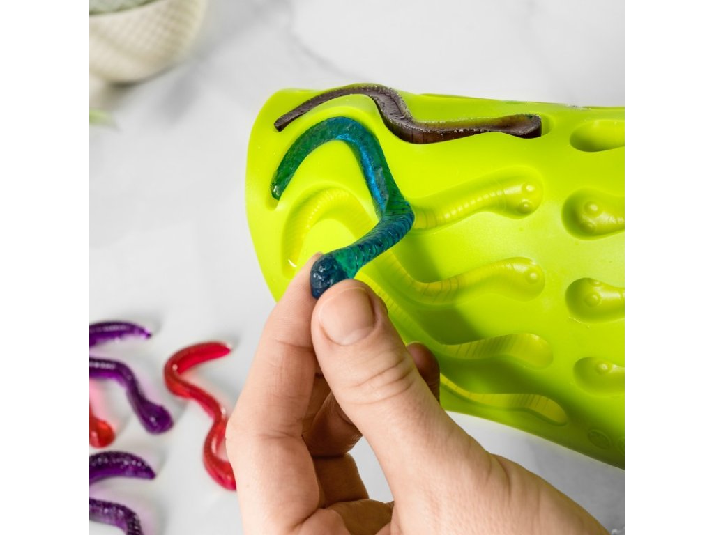 Nem csak a gyerekek szeretik a zselés cukorkát! Te is szeretni fogod őket! Főleg, ha otthon kényelmében, jól ismert alapanyagokból, alacsony cukortartalommal, tartósítószerek és vegyszerek nélkül készülnek. Vicces szilikon formánk cuki férgek számára elkészítheti és elkészítheti saját zseléjét, csokoládéját vagy jeges cukorkáját gyermekeivel együtt otthon. Egyszerű házi finomság az egész családnak :) Természetes gyümölcslevet, szörpöt, gyümölcsteát és egyéb egészséges alapanyagokat használhatsz a cukorszint szabályozására, tartósítószerek, színezékek stb. és készítse el őket igazán úgy, ahogy tetszik. Sok receptet könnyű megtalálni az interneten, de elkészítheti saját maga is, és élvezheti a sok mókás kísérletezést. Érezzétek jól magatokat és készítsetek aranyos kukacokat :)