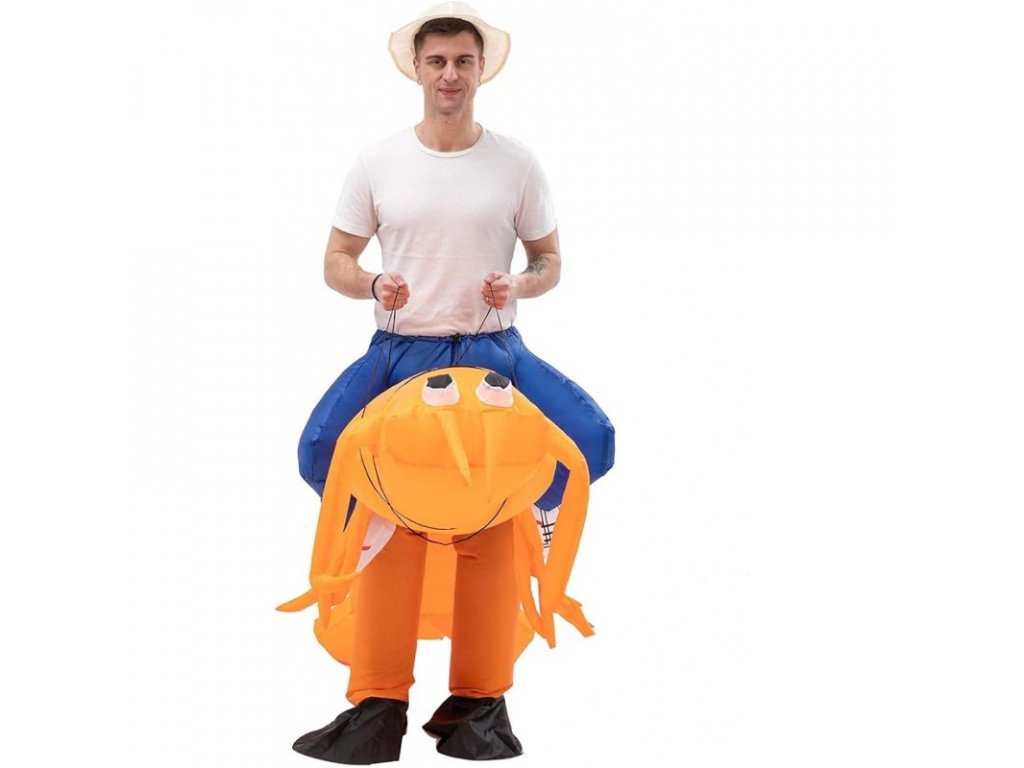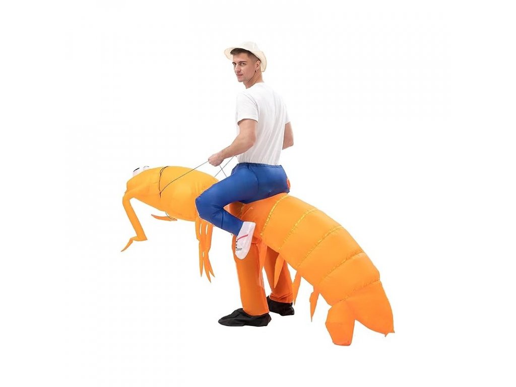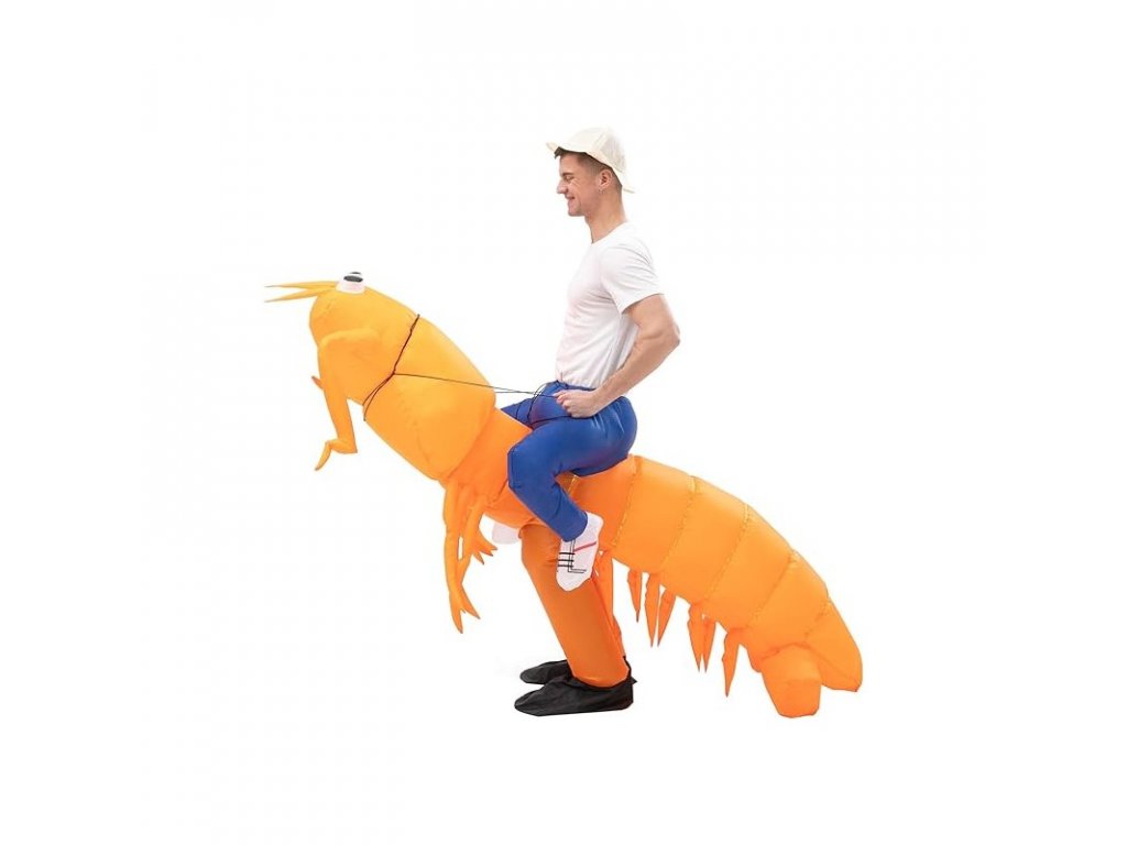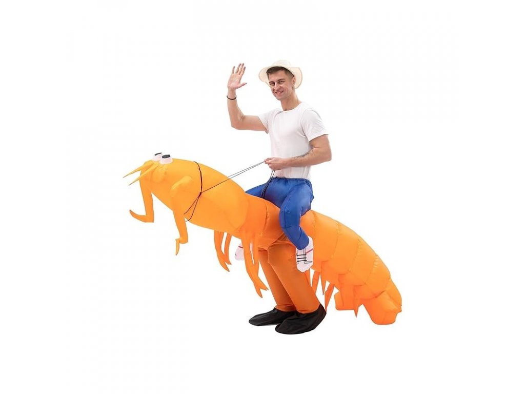 A vicces, levegővel felfújódó lovas garnélarák jelmez alkalmas Halloween bulira, karneválra vagy tematikus bulira, de lehetővé teszi a gyerekek számára szórakoztató program vagy humoros színházi előadás összeállítását is.