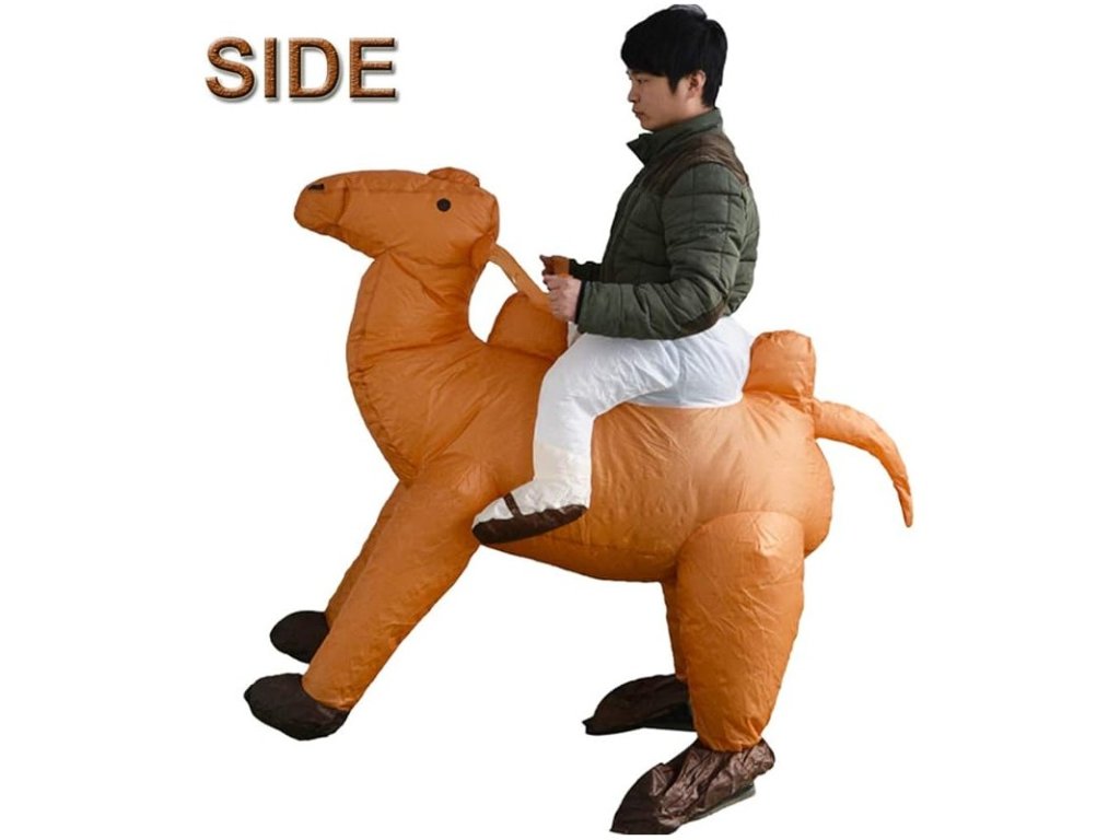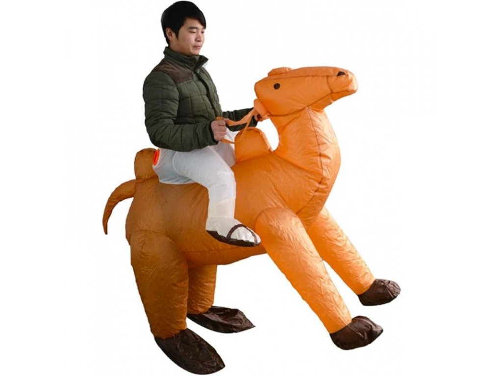 Egy vicces teve jelmez lovassal alkalmas Halloween-partira, farsangi vagy tematikus bulira, de lehetővé teszi a gyerekek számára szórakoztató program vagy humoros színházi előadás összeállítását is.