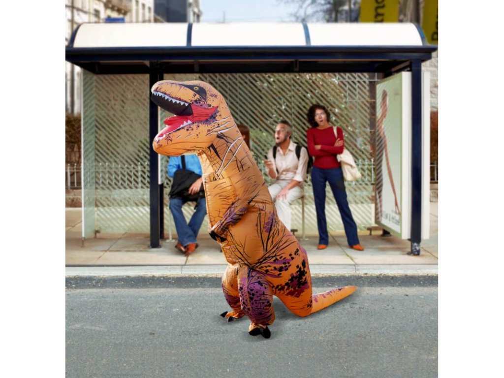 Fantasztikus dinoszaurusz jelmez fúvóval. Egy hatalmas dinoszaurusz biztosan hatalmas benyomást tesz mindenkire. A felfújható dinoszaurusz jelmez akár 1,5-1,9 m magasságot is elérhet. Szeretsz kitűnni és felkelteni mások érdeklődését? Különlegesen fogod érezni magad benne. A nagy farok, a hatalmas mancsok és a szélesen nyitott száj sok embert megrémít. Ideális kiegészítő farsangi vagy születésnapi bulikhoz. Teljesen névtelen leszel a jelmezben. A jelmezhez speciális fúvó van rögzítve, ami még hatékonyabbá teszi a jelmezt. A jelmez elöl cipzárral záródik.