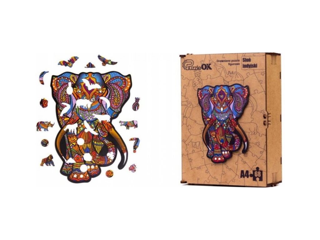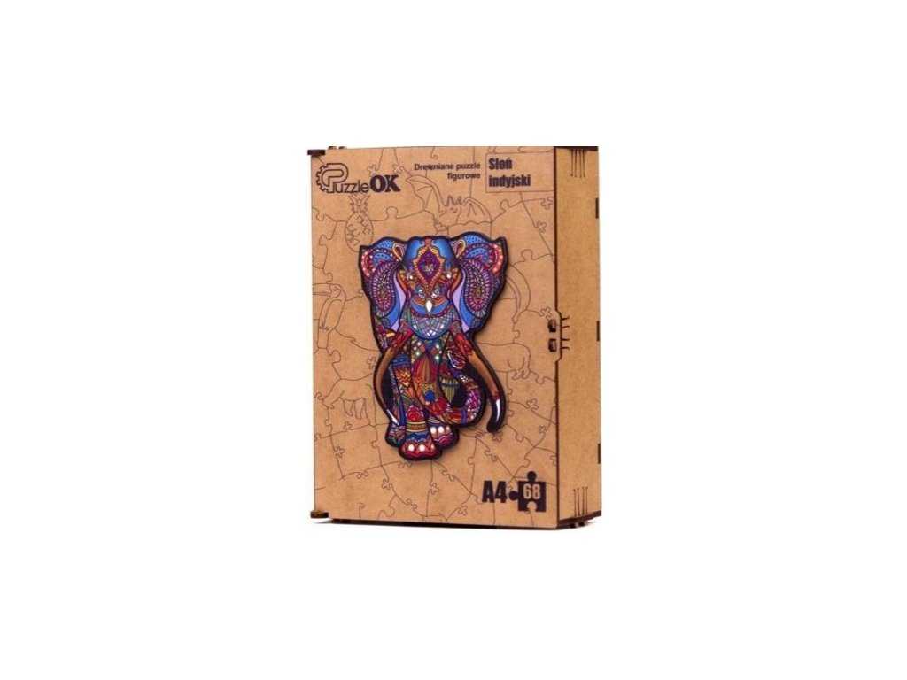3D kézzel készített fa puzzle - Indiai elefánt A4