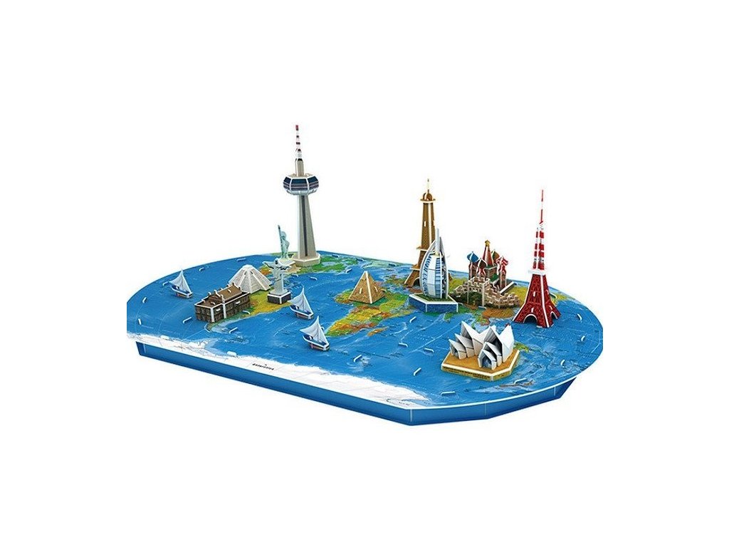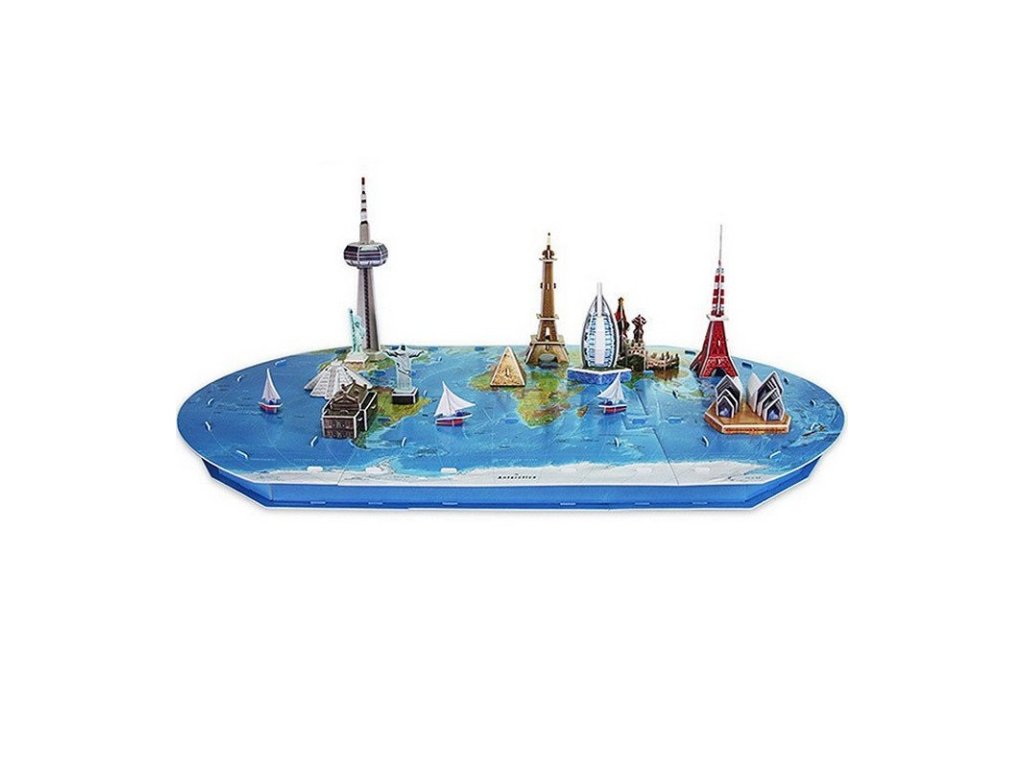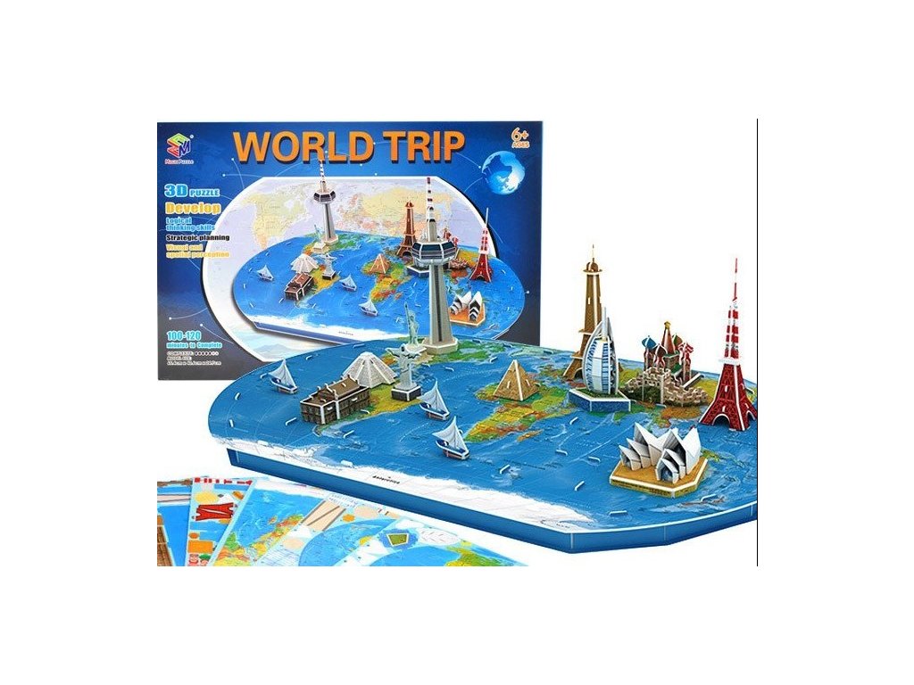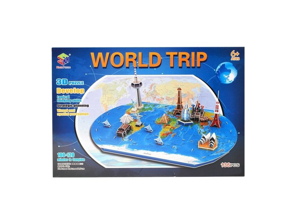 3D puzzle – A világutazás remek szórakozás mindenkinek, aki szeret rejtvényeket összeállítani. Az épületek összeszerelésével fejlesztjük a háromdimenziós képzelőerőt, sok részletet láthatunk testközelből. A térképen olyan épületeket talál, mint az Eiffel-torony, a Sydney-i Operaház, a Szabadság-szobor és még sok más. A készlet 136 elemből áll. A puzzle összeállításával fejleszti képzeletét, logikus gondolkodását és észlelését. A rejtvény megelégedettséget ad, türelemre és finomságra tanít.