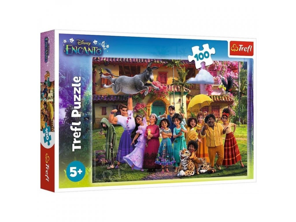 A puzzle-ok sok éve népszerű tevékenységnek számítanak. Ez a puzzle 100 darabból áll, és a Disney műhely új meséjének minden rajongója számára készült. A rejtvény a varázslatos Madrigál családot ábrázolja az Encanto című animációs meséből. Egy puzzle összeállításával a gyerekek kiválóan edzik finommotorikájukat, képzelőerejüket és memóriájukat. A puzzle-darabokat még a gyerekek kezébe is könnyű megfogni. A puzzle-ok pontosan illeszkedő darabokat tartalmaznak. Kiváló minőségű kartonból készültek. A csomag egy szemléltető képet tartalmaz az elkészült puzzle-ról.