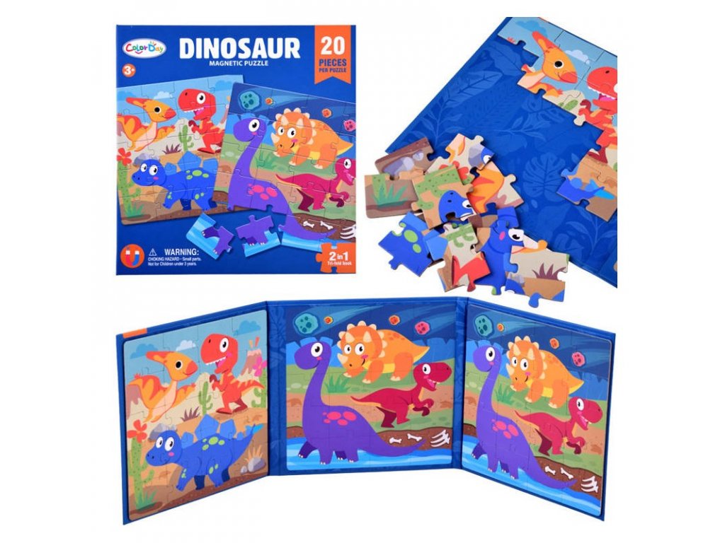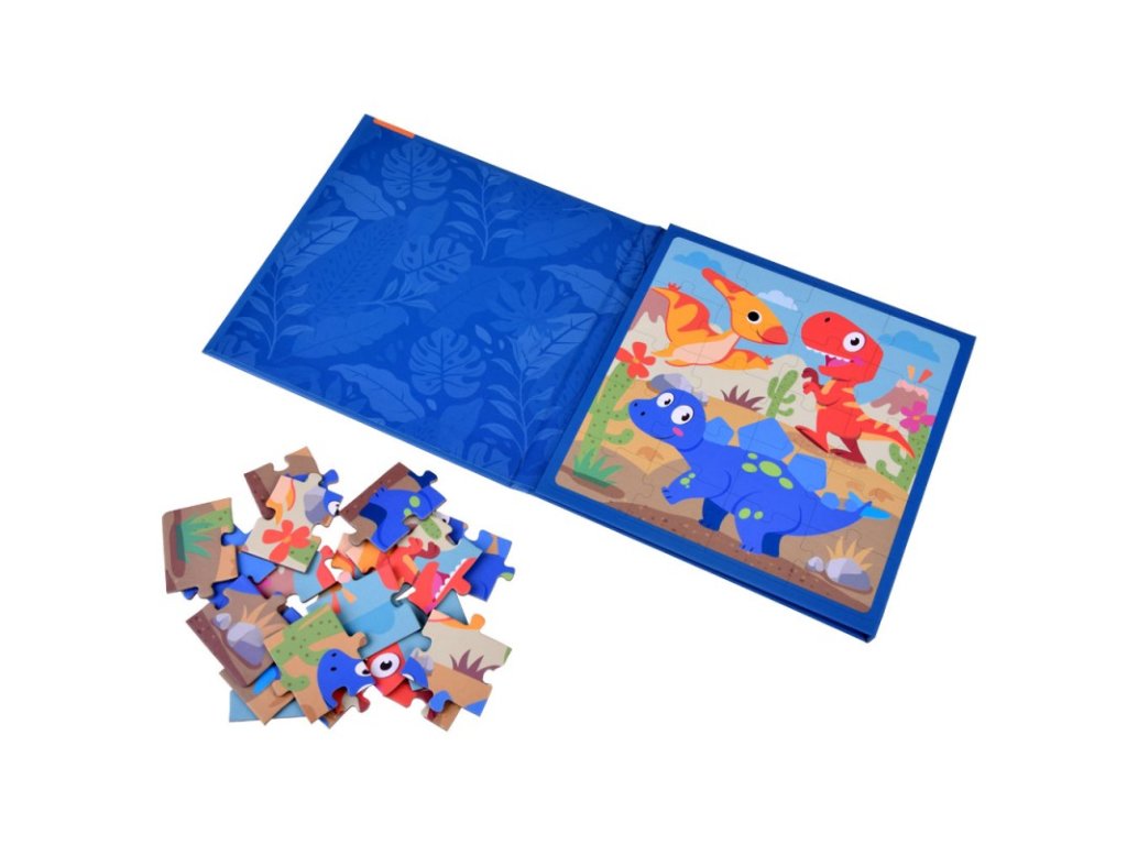 A színes mágneses puzzle őskori dinoszauruszokkal, könyv formájában, remek ötlet ajándéknak minden kíváncsi gyerek számára. A feladványok elrendezése fejleszti a térbeli képzelőerőt, segíti a koncentrálást és az ellazulást. A könyv 2 db rendezendő képet tartalmaz, mindegyik azonos darabszámmal. Mivel mágneses kirakóról van szó, a könyvet el lehet vinni egy kirándulásra vagy betehetjük az autóba, a rejtvények nem esnek le, mert a könyv vonzza őket. Természetesen bármilyen fémfelületre vagy mágnes által vonzott felületre is elhelyezhetők. A kirakós játékok elrendezése fejleszti a képzelőerőt, javítja a koncentrációt és elősegíti az ellazulást és a nyugalmat.