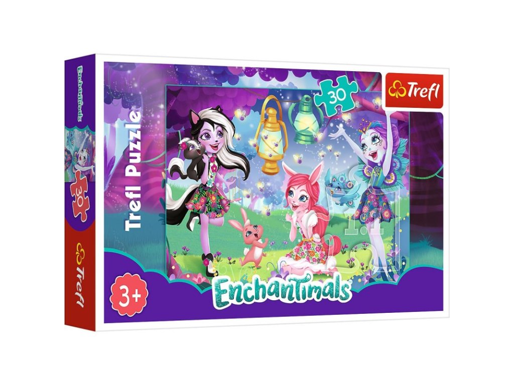A 30 darabból álló Puzzle a népszerű, az utóbbi időben nagy népszerűségnek örvendő Enchantimals című gyerekrajzfilm-sorozatot ábrázolja.