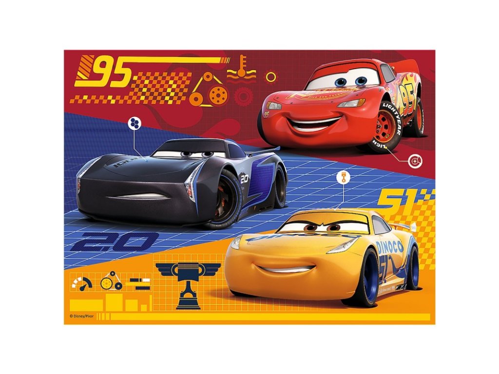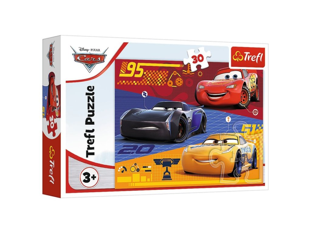30 elemből álló rejtvény az Autók című animációs sorozat szereplőivel. A puzzle összeállítása után egy 27 x 20 cm méretű kép készül. A kiváló minőséget, a színtelítettséget és a biztonságos hajtogatást a kalanderezett fényvisszaverő papír biztosítja, amely ráadásul ökológiai élelmiszerfestékekkel van bevonva.
