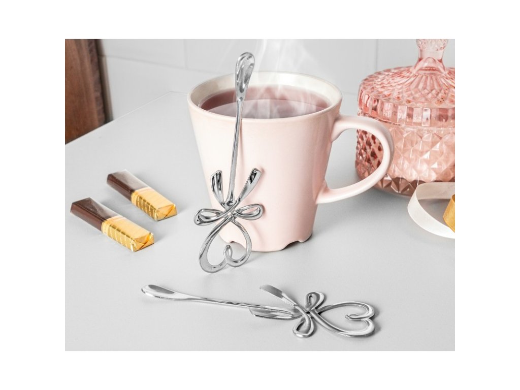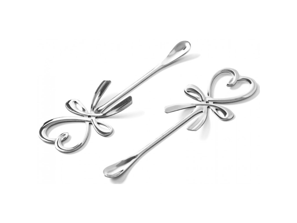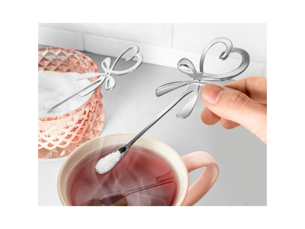 Tegye szeszélyessé teáját, kávéját vagy desszertjét ezekkel a bájos keverőkkel és mini teáskanálokkal, amelyek mindegyikét elegáns szív alakú masni díszíti.