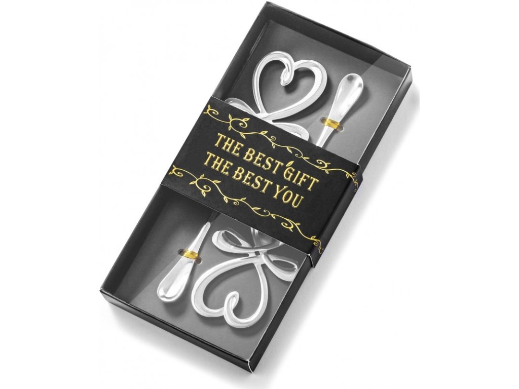 - egy romantikus fém keverő és teáskanál készlet szív alakú nyéllel és masnival