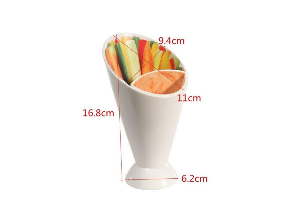 A praktikus, intelligens és többfunkciós uzsonnatál kiváló otthoni kiegészítő. Nagyszerű chipshez, sült krumplihoz, rudakhoz, nacho-hoz, fagylalthoz vagy más finomságokhoz. A tálhoz tartozik egy kisebb, kivehető tálka is, amivel különféle szószokhoz és öntetekhez használható. Alkalmas mindennapi használatra és bármilyen rendezvényre.