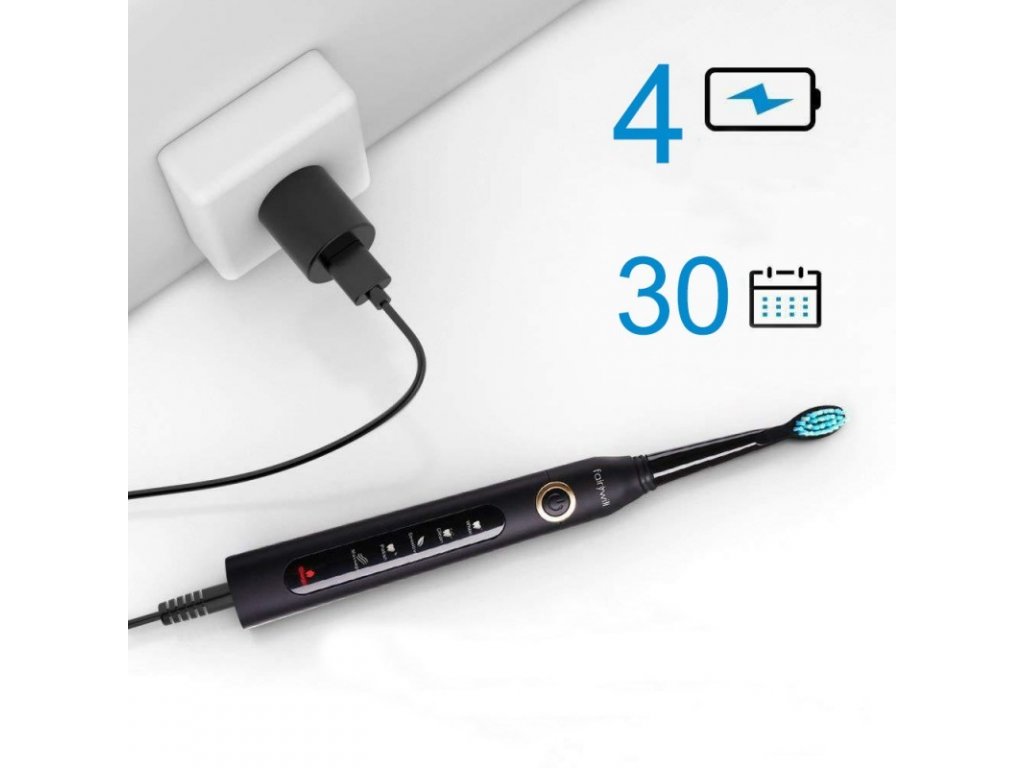 A FairyWill FW-507 fogkefe strapabíró akkumulátorral van felszerelve, melynek köszönhetően egyetlen feltöltéssel akár 30 napig is tökéletesen szolgálhat. A töltés körülbelül 4 órát vesz igénybe. A készülék 110-240 V-os feszültségtartományt támogat, ami azt jelenti, hogy nem csak egy normál hálózati töltőhöz, hanem például laptophoz vagy power bankhoz is könnyedén csatlakoztathatjuk, és magunkkal vihetjük utazásainkra.