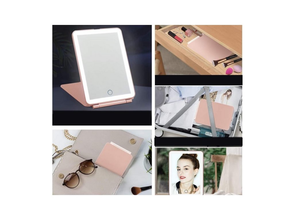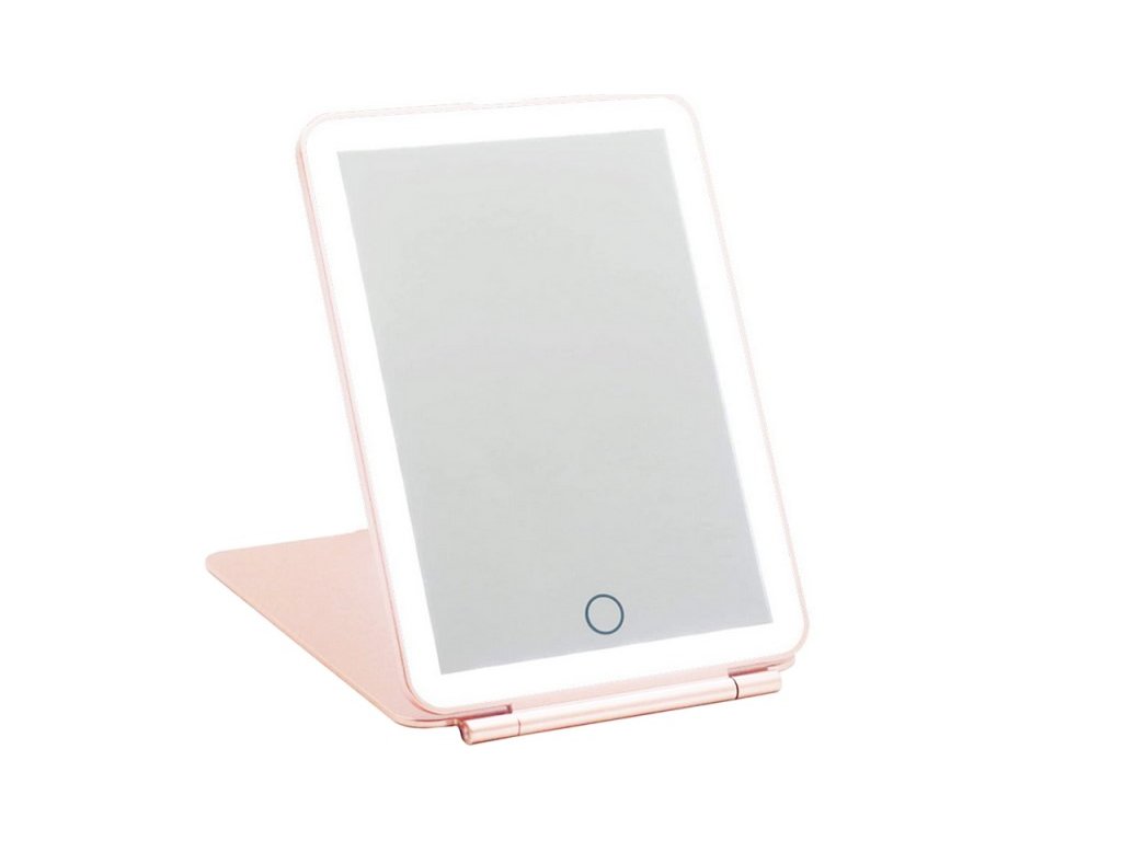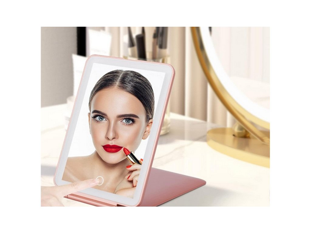 A megvilágított tükör nagyon praktikus és rendkívül hasznos eszköz a szépítéshez, sminkeléshez vagy kontaktlencse felhelyezéshez. A tükör körül egy beépített LED szalag található, amely egyenletesen megvilágítja az arcot, és így útközben is segít tökéletes smink elkészítésében. A LED-ek állíthatóak és meleg, hideg és vegyes fényt biztosítanak. A tükör a tükör alján egy érintőgombbal van felszerelve, amely lehetővé teszi a fény színének és intenzitásának megváltoztatását. A szín a gomb rövid megnyomása után megváltozik, a fényerősség pedig az érintőgomb nyomva tartása után változik. A tükör praktikus, és kis helyet foglal egy kézitáskában vagy bőröndben. Borítóval van zárva, amely megvédi a tükröt a sérülésektől. Nyitott állapotban a fedél állványként funkcionál. A tükör töltése a készletben található USB típusú B kábellel történik.