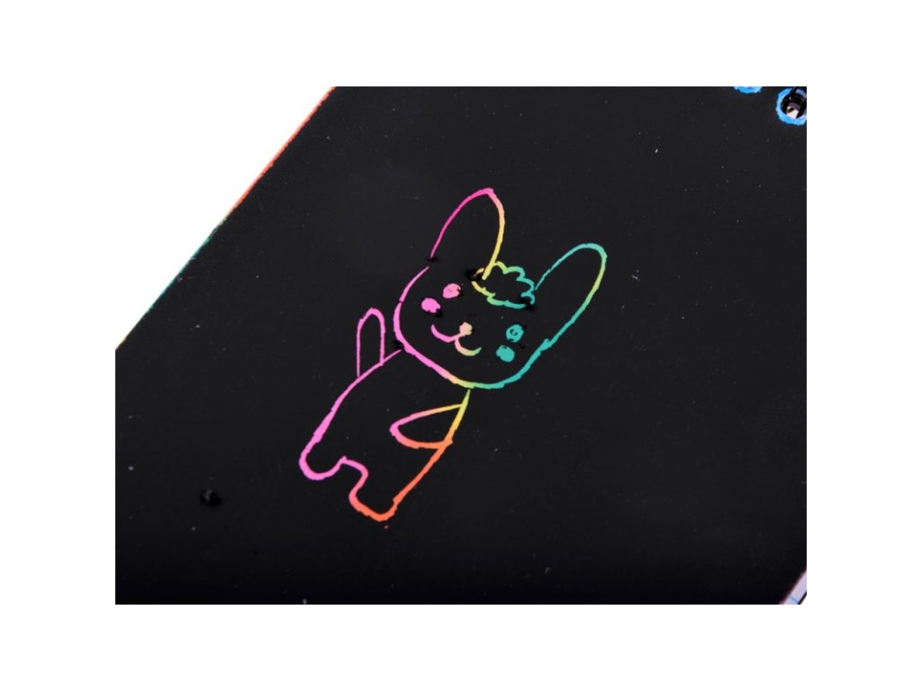 TIME KILLER - ez a karcoló készlet ideális hosszú autós (vagy más közlekedési eszköz) utakra, vagy az orvosi váróteremben eltöltött idő csökkentésére. Tökéletesen leköti minden gyermek figyelmét, így gyorsabban telik az idő! SERKENTI A KÉPZELETÉT - a lekaparható lapkészlet nagyon kreatív játék, korlátok nélkül - bármit lerajzolhat fantáziája szerint. Nemcsak a szabadidő eltöltésének vonzó módja, de hatással van a gyermek értelmi fejlődésére, valamint a szem-kéz koordinációra is. A rajzok készítése fejleszti a kreativitást és serkenti a térbeli fantáziát, valamint a gyerekek koncentrációját és manuális képességeit.STYLUS - a készletben található egy speciális, gyermekek számára is biztonságos fa toll - leegyszerűsített formája van, aminek köszönhetően nem vágható, karcolható. HORDOZHATÓ – ezt a kis füzetet gyermeke bárhová magával viheti – például óvodába vagy kirándulásra. Minden hátizsákba és pénztárcába illeszkedik.