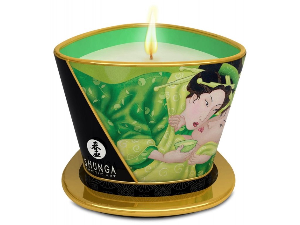 Melegítsen fel masszázsolajos gyertyánkkal! A zöld tea lágy, földes illatával a paradicsomban érezheti magát.